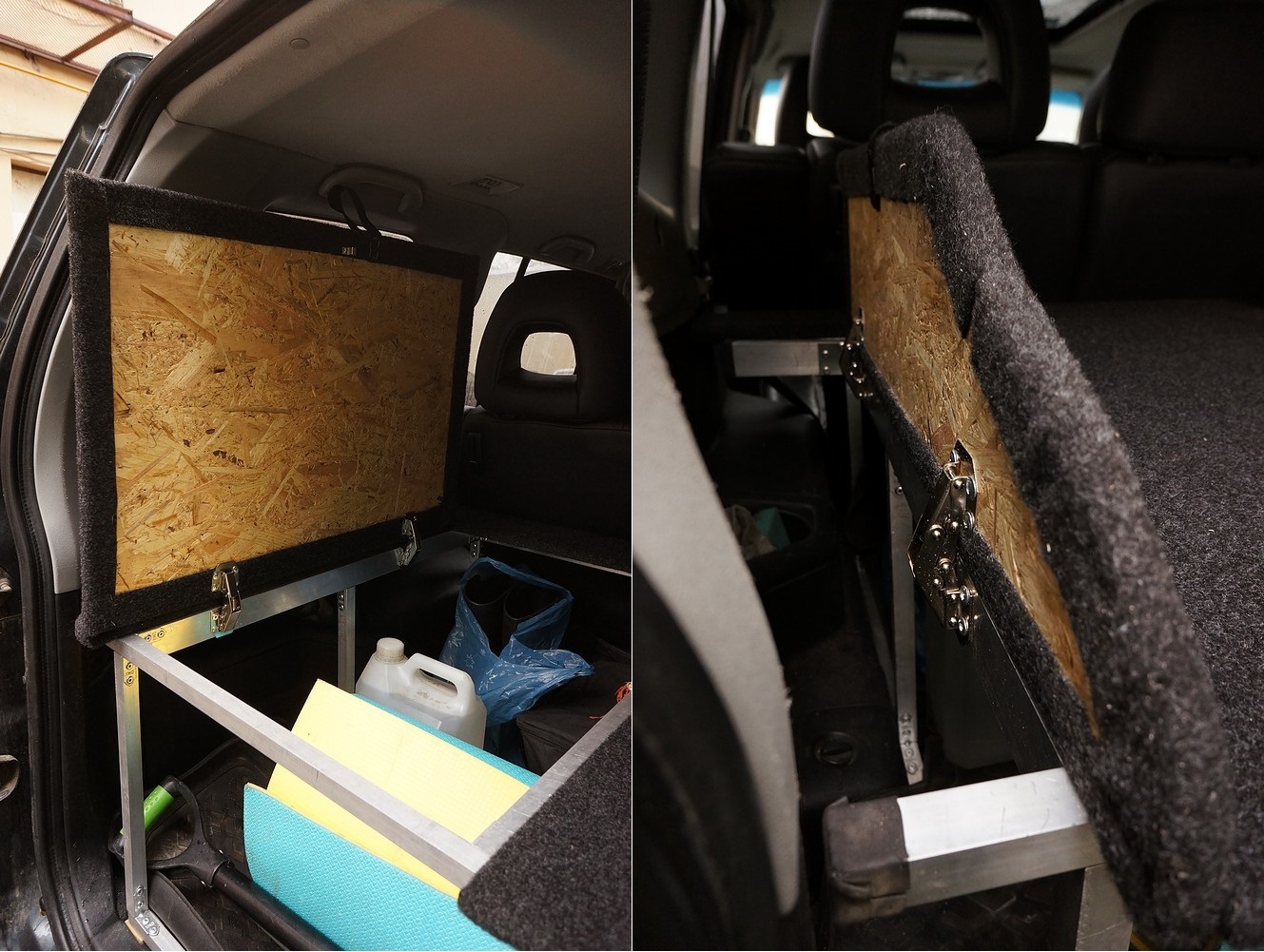 >>82580 Сиденья смысл оставлять для транспортировки пассажиров. Допустим, путешествуем вчетвером: на ночь двое уходят в палатку, а двое спят в тачке. Эти "ноги" в салонной части - они складные и довольно быстро убираются, как и крышки. Если едут только двое или один, то конечно можно и нужно задний ряд снимать - я об этом писал выше.