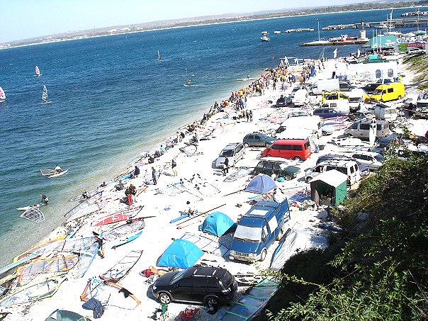 неделю сидели на берегу - нет ветра. ночью, после шаманских заклинаний и возлияний задул, поставили машины вдоль берега с вкл фарами и на воду
