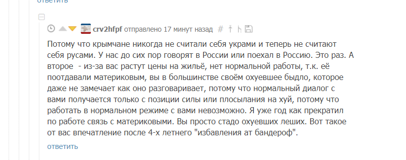 >>55602 Кому же мне верить? Коренному крымчанину, годами варившемуся в "русском мире" или залётному обрыгану, который не факт, что с дивана слазил когда-нибудь? Дай-ка подумать... Нахуй иди.