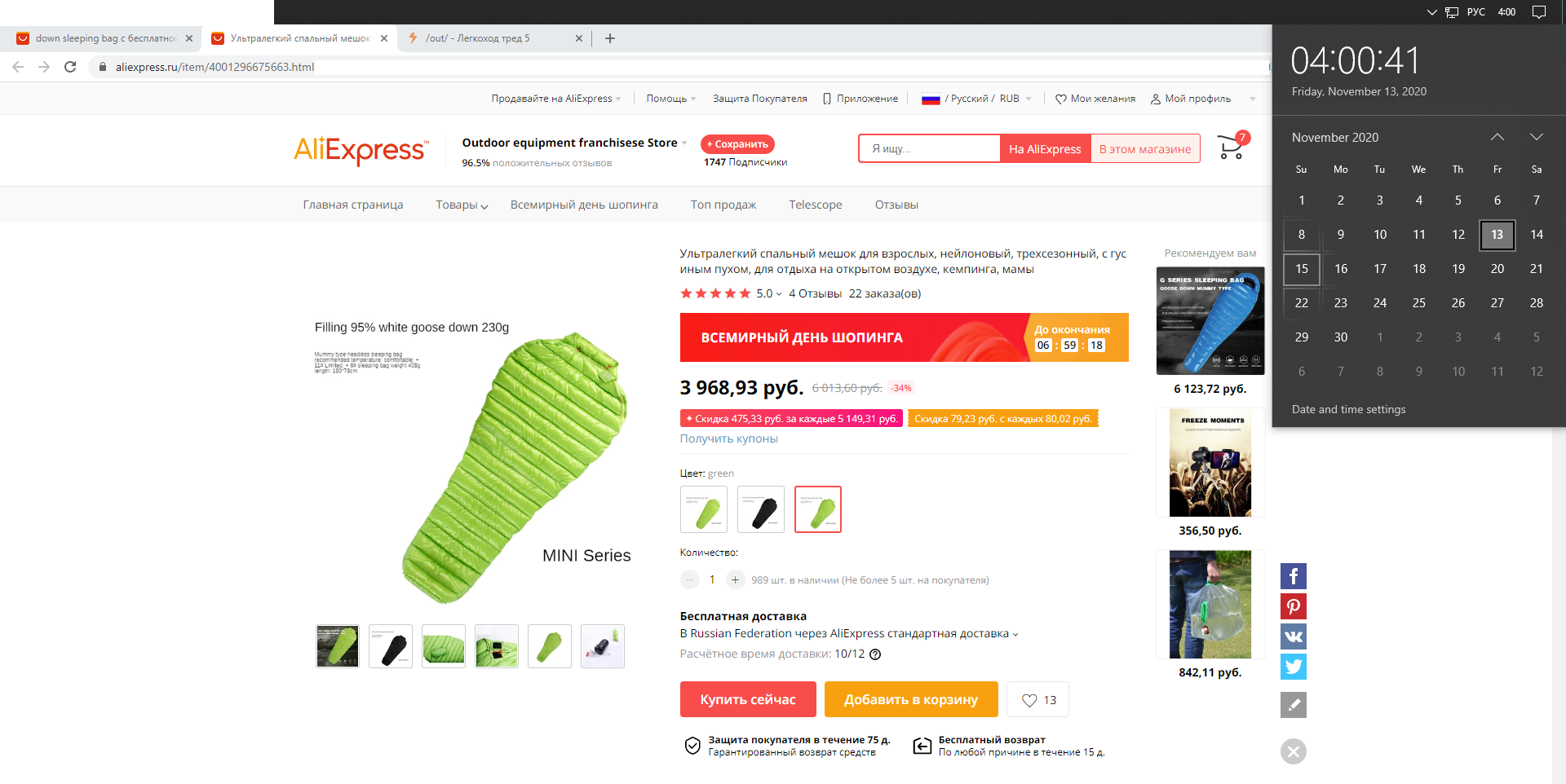 Тут когда-то был разговор про спальники и я сказал что за 4к можно летний пуховый купить на алике. Дешево! Черт распетушился: РЯЯЯ НЕ БЫВАЕТ