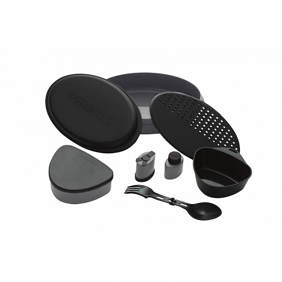 Выкинуть фляжку, кружку и чехол, добавить ещё один чуть меньшего размера котелок и получится годная штука: лёгкая - всё из люминия, чёрная - немаркая и несильно дорогая. Пишут что топить можно сухим горючим, пирогелем, спиртовкой и щепками.