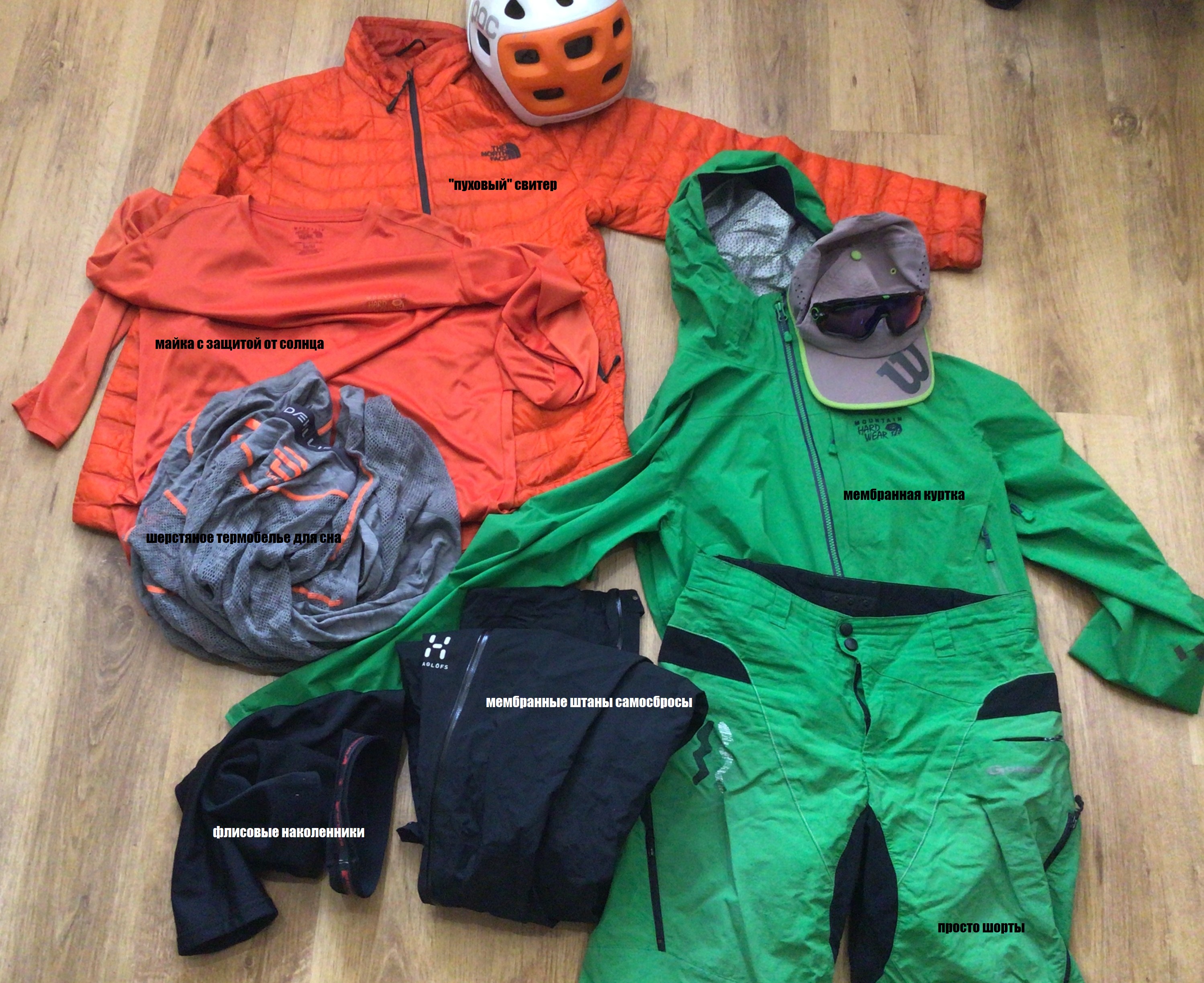 Из верха - термуха, тонкая флиска, пуховый свитер, мембранка.