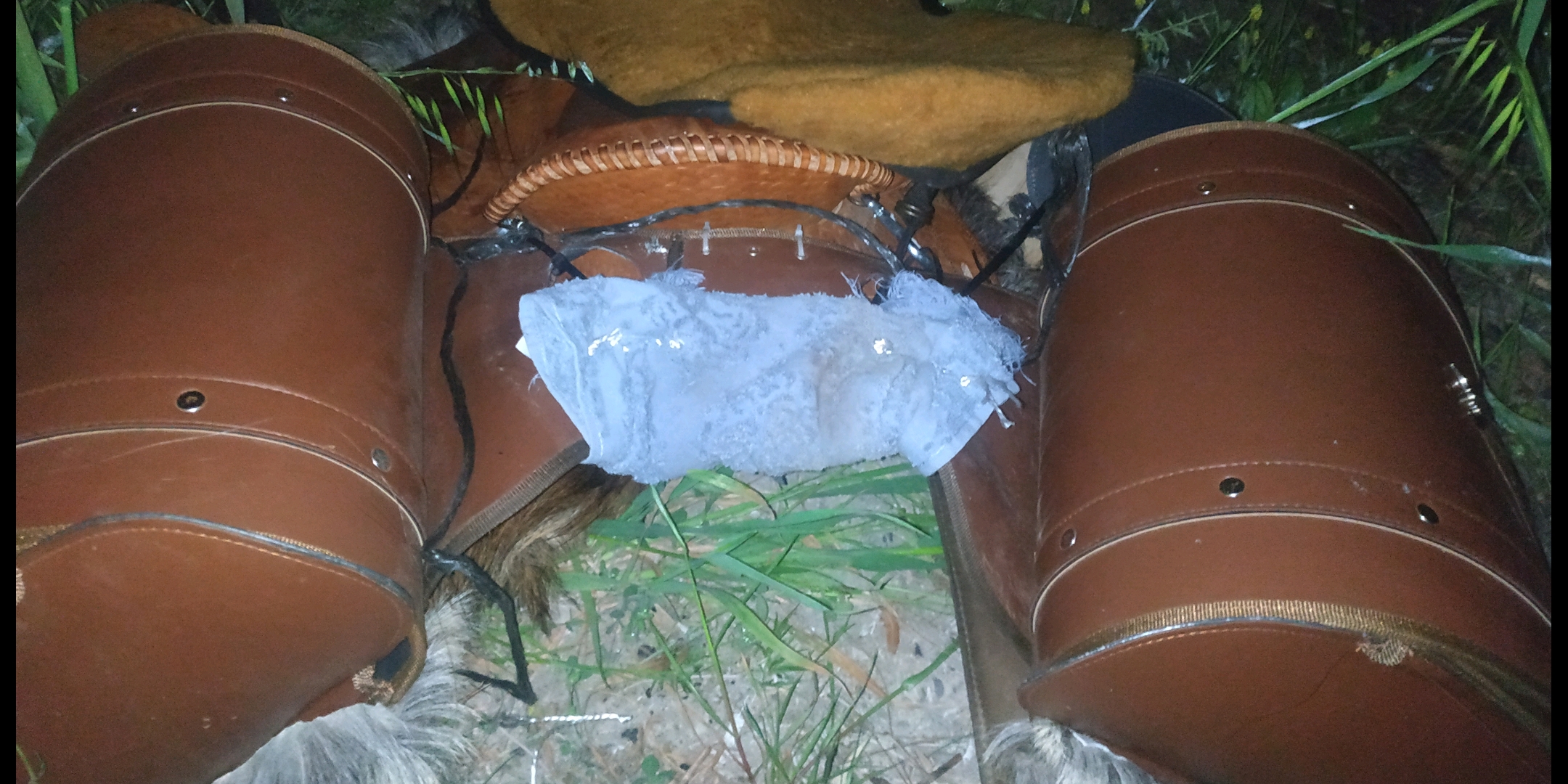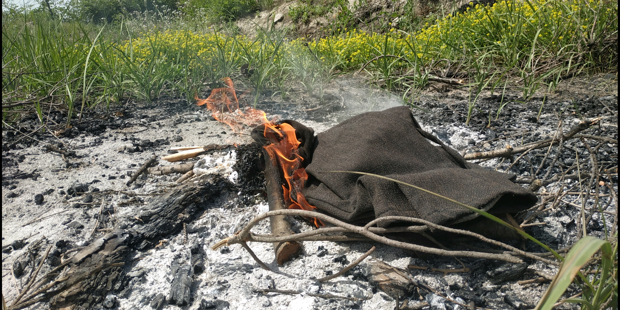 На скоряк пришил полотенце к сумкам. В костёр сегодня улетели носки, футболка, штаны, трусы, макароны, и все хим пакеты еды, этими вообще только врага травить, китайка выбор победителя. Неведмые плоды дерева зашли обоим. Кто-то там свистит, толи мне, то-ли собакам. Идем. Обходя гору сверху обнаруживается дед. И кричит :