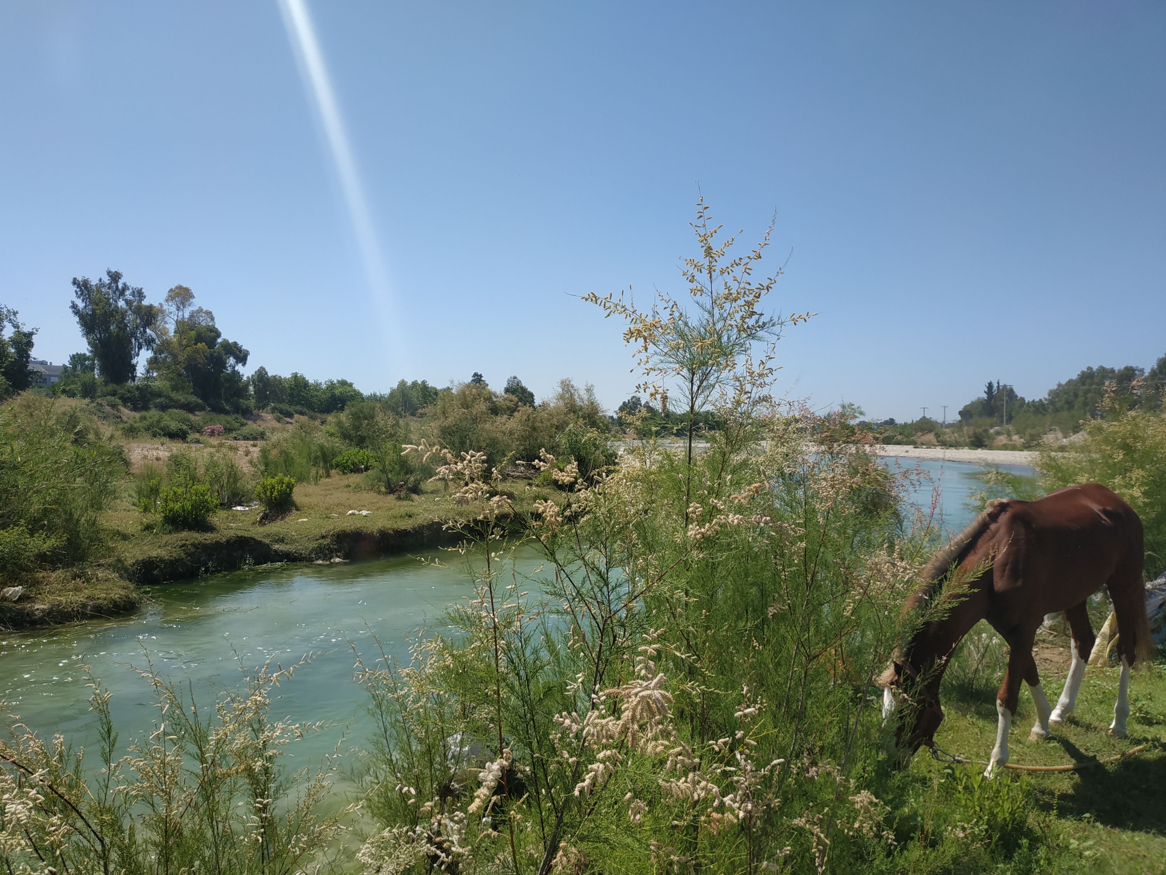 >>90064 Турк День двенадцатый. Идем к воде, солнце уходит. Вокруг речки все поля засеяны, втихаря лезем в угол пшеничного. Конь выедАет свой радиус травы, задерживаться тут не стоит. Далее. Сфоткатся ладно, но катать - не. Предлагают за это деньги. Привязал кони к дереву, оставил груз на нем, ушёл в ресторан. Вернулся - оторванная сумка на полу. Шуганули или в реку шагнул Значи сегодня не идём, зашиваю. Игла ломается. Тогда плавлю дырки. Сегодня зашли в тупик, единственная дорога идёт через бешеную трассу, тогда выйдем ночью , нужно пройти 3 километра
