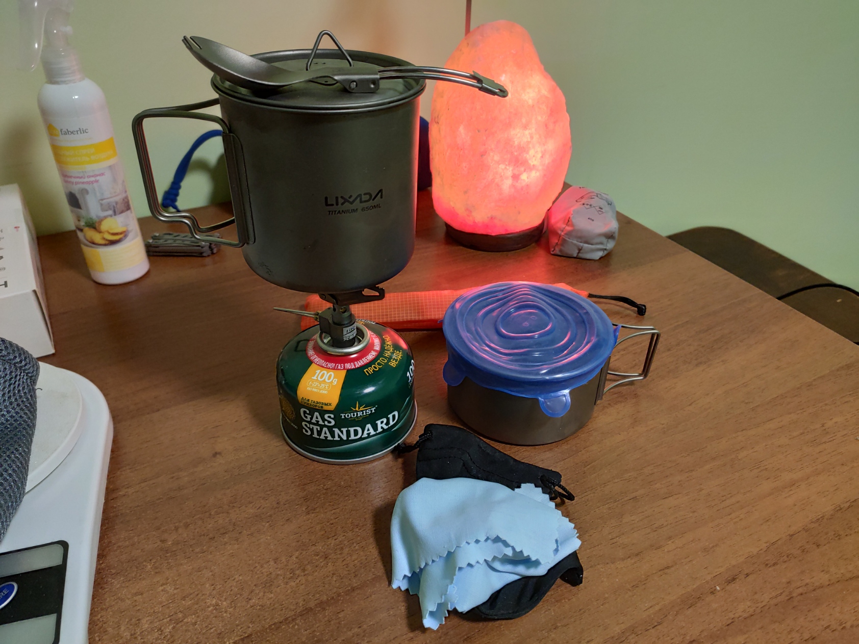 Ну и как я этим пользуюсь. Ем я только собираемую мной же сушеную еду и всякое говно говно, которое достаточно залить горячей водой и подождать. В кружке с крышкой кипячу воду, в миски с силиконовой крышкой завариваю и ем свои кашки и т.д. То есть вскипятил кружку - залил миску с едой, вскипятил вторую кружку - закинул в неё чайный пакетик. Расход довольно маленький и в целом всё идеально, кроме титановый фольги - её бы хотел на что-нибудь поменять, но пока нихуя не придумал.