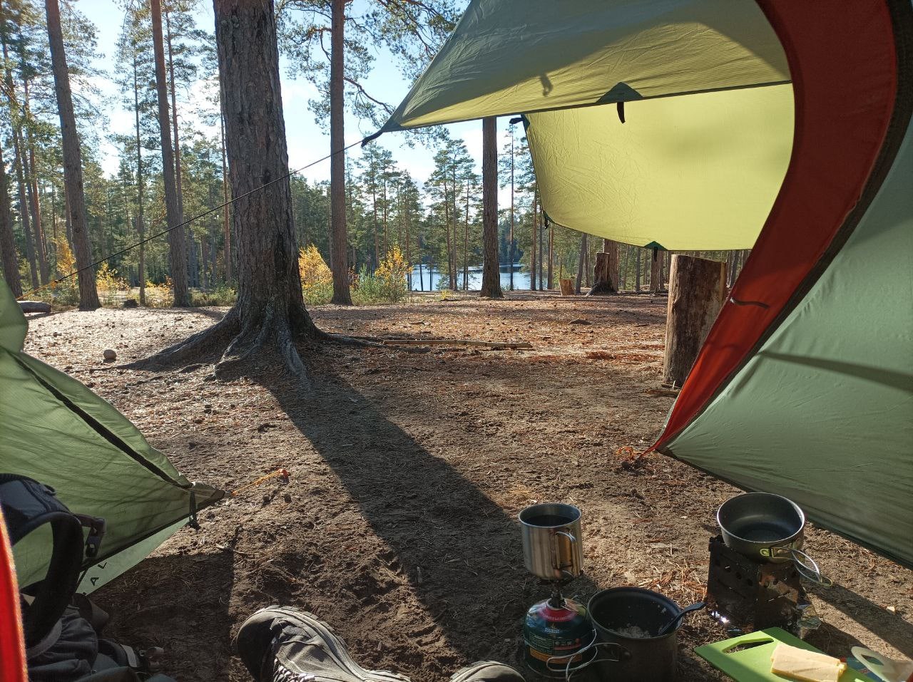 >>92478 → Ну, можно сказать: сэкономить на спичках не получается. Вернулся из очередной соло ПВДшки, на этот раз с гамаком. Температура ночью была +8, на дно гамака стелил шпротмастеровский коврик-пенку 15мм, сверху спальник натурхикки u250 +6 - +3 комфорта. Сразу как улёгся, в районе задницы и поясницы ощутил прохладу и решил не рисковать - постелил под спальник флиску. Термуху не надевал, спал в трусах и футболке. В общем часов до 23 было жарковато, если застегнуться, потом норм. Но ближе к рассвету прохлада стала равномерно проникать внутрь спальника и снизу и !сверху! (Вот тебе и +6). Не то чтобы сильно холодно, но неприятно. Зато как комфортно... В жизни так не высыпался с походах. Ну и благодаря этому всему поход вышел супрлегкоходный - всего 10кг рюкзак. Не чувствуется почти.