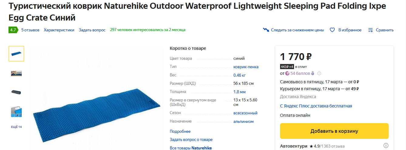 Гармошку и ижевку я тебе совершенно написал в одном списке, специально, чтобы сравнить "крутую" Thermarest Z-lite и "некрутую" ижевку. (кстати, у "некрутой" ижевки R-value по моим субъективным ощущениям повыше, ну да пох.)