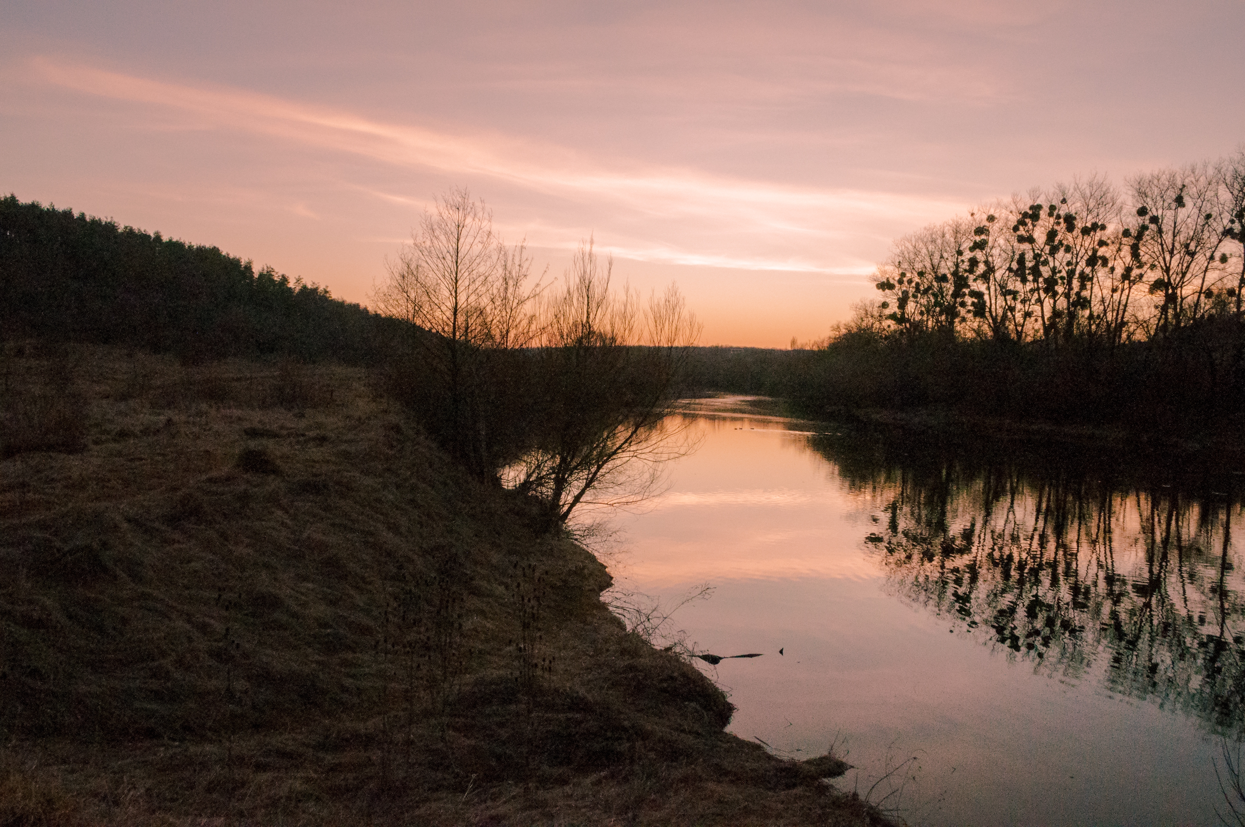 Если нет, то: 1. Поставь фотик на штатив 2. Включи режим М, Поставь самое низкое ISO и съемку в raw 3. Закрой диафрагму на 8. Почему именно на 8? Потому что твой объектив на ней выдает наилучшую картинку. Если хочешь снимать пейзажи, всегда проверяй тесты своих объективов на резкость Например: https://www.dxomark.com/Lenses/Nikkor/AF-S-DX-Nikkor-18-55mm-f-3.5-5.6G-VR-mounted-on-Nikon-D5000---Measurements__587 4. Настрой брекетинг по экспозиции. Фотоаппарат снимет три кадра с разным уровнем экспозиции. Тебе нужно настроить эти уровни так, чтобы на первом были нормально проэкспонированы светлые участки, второй был чем-то средним, а на третьем был хорошо виден лес. Дальше ты эти три файла должен склеить и получить нормальный человеческий пейзаж. Если нихуя не понял, на ютубе ЛЮБОЙ ролик про "брекетинг по экспозиции" Алсо, малиновые закаты на речке очень заезженная тема, рекомендую найти локацию и сюжет поинтересней.
