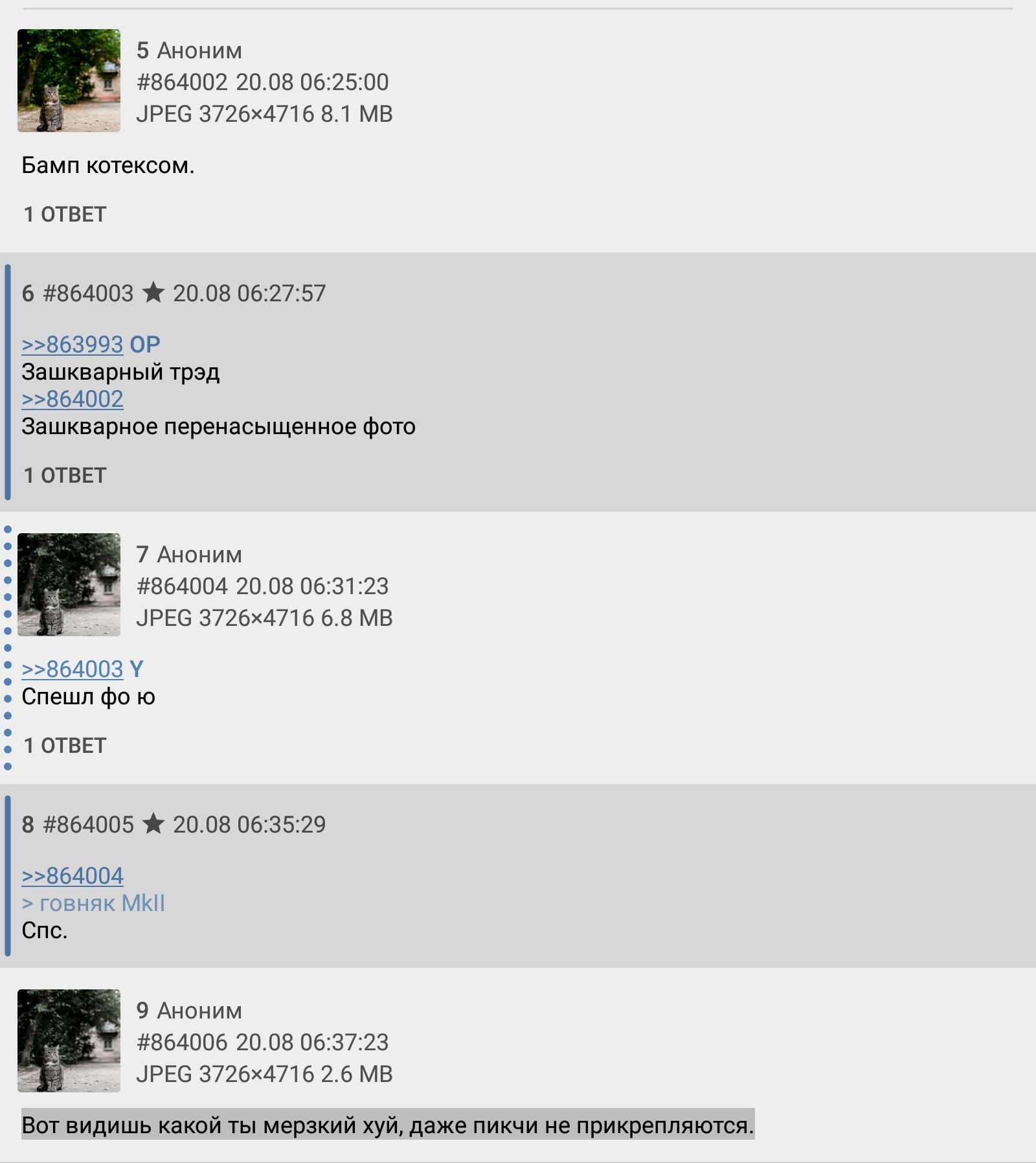 Какая же ты бездумная, тупая пидорасина. В прошлом треде было мало годноты, но это не значит что нужно на оппик хуярить котов, опять. Пиздец.