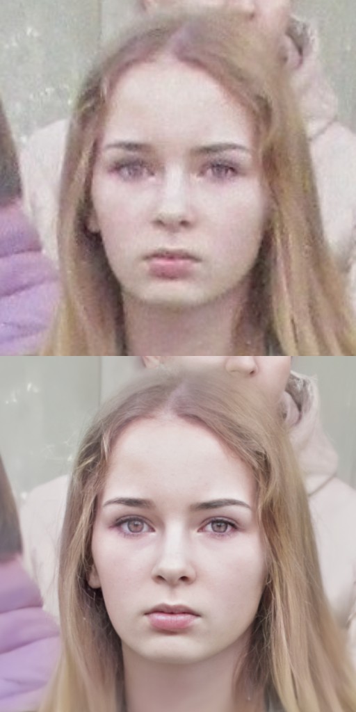 >>668629 Уже больше года использую эту нейронку для фоток. Плохо, что бесплатно приходится ебаться с фотошопом, размывает она заметно, может лишние детали слизать, а также не умеет в зубы и очки вообще. Подправить мыло или нойз на неудачной фотке годится отлично.