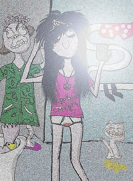 >>861799 тут конечно печальнее здоровенная тушка в сравнении с которой тянучка ребенком выглядит, непонатная локация фона(хромак) и вообще не понятно зачем голой тянучке стекла....