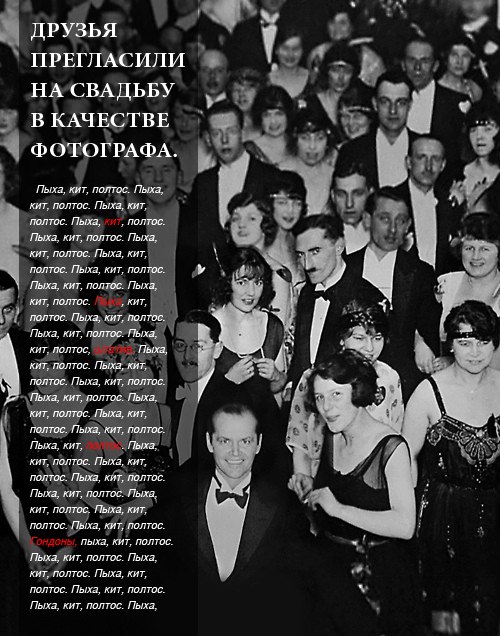 Лет пять назад читал здесь великолепный тред про скуфов-свадебщиков и пенсионеров, угорающих по ню и проводящих даже тематическое курсы. Какие же там были фотки…
