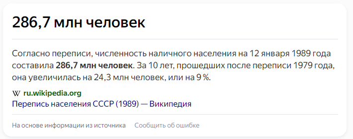 >>855561 В миллионниках жило 44 миллиона. Как 15% превратилось в 25%? Но я не буду въедаться как вошь в твои слова. >У нас в озерске например было все очень хорошо со снабжением, хотя город и закрытый. У нас города были закрытыми, так как люди замерзали на смерть, если не могли найти ночлег, а не из-за каких-то крутых производств. По факту это были вахтовики, которые обзавелись семьёй. Первая капитальная пятиэтажка в моём городе появилась в 81. По факту нужна была справка о размещении для въезда. >Один из моих прадедов прадед жил в деревне, и в колхозе посреди нихуя южного урала я бывал. С какой целью интересуешься? Узнать по чём были расходники в его сельпо? >Ты щас пытаешься сказать что ситуация снабжения северных ебеней ничем не отличалась от остальной страны? Вся страна снабжалась так себе, потому и распалась. Могу судить по татарским городам, забайкальским, северным, кавказским, дальневосточным. Разумеется я не бегал по магазинам Братска или Свободного. >Покажи мне советский магазин 80х где не было в продаже смены 8м? Самая массовая фотокамера в мире и дефицит, ты мне втираешь какую-то дичь. Камера за 35 рублей, была вполне себе по карману любому желающему. А где я писал про фотоаппараты? Ты сам втёр себе какую-то дичь, как студент, который выучил билет про огурцы, а вытянул про помидоры, и теперь "Помидоры растут рядом с огурцами, а огурцы..." Прекращай уже передёргивать, рад что у тебя было более благополучное детство. Странно, чего ты нервный такой вырос. Может дед "Киев" не за просто так подарил?