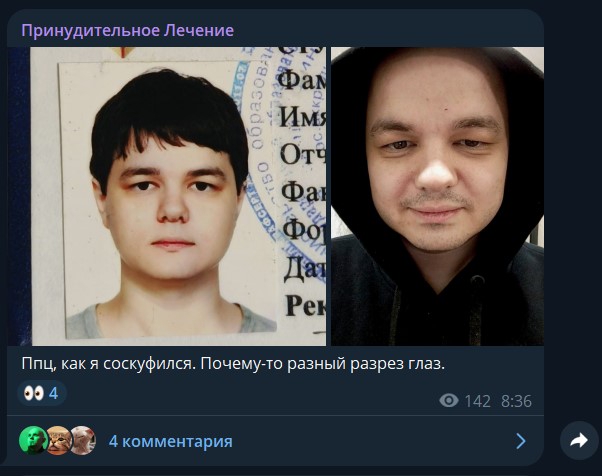 Зовут его Максим Анатольевич Кондратьев. Убил свою мать, когда та спалила его коллекцию гурятины и цп, и разрубил труп на куски, сумел косануть по дурке. В 2024 или 25 году его выпустили на амбулаторку, с пенсией по шизе. Ему бы тихо сидеть и пиздявкалку не разевать - а он, дурак, начал вниманиеблядствовать в телеге и на двощах. Тупых альтушек, фанатеющих по маньякам, шпёхал. Засветился у говноблогера позднякова. В августе его закрыли опять. Зовут его Максим Анатольевич Кондратьев, он из Ёбурга, ему за тридцать уже. Пруфпики вот они. На скрине из телеги он описывает, как пытался избавиться от трупа матери. Никакого раскаяния и сожаления не испытывает, у него нет эмпатии, он вменяем, но при этом психопат. Возможно, на нём ещё есть убийства, возможно сейчас следствие это и проверяет.