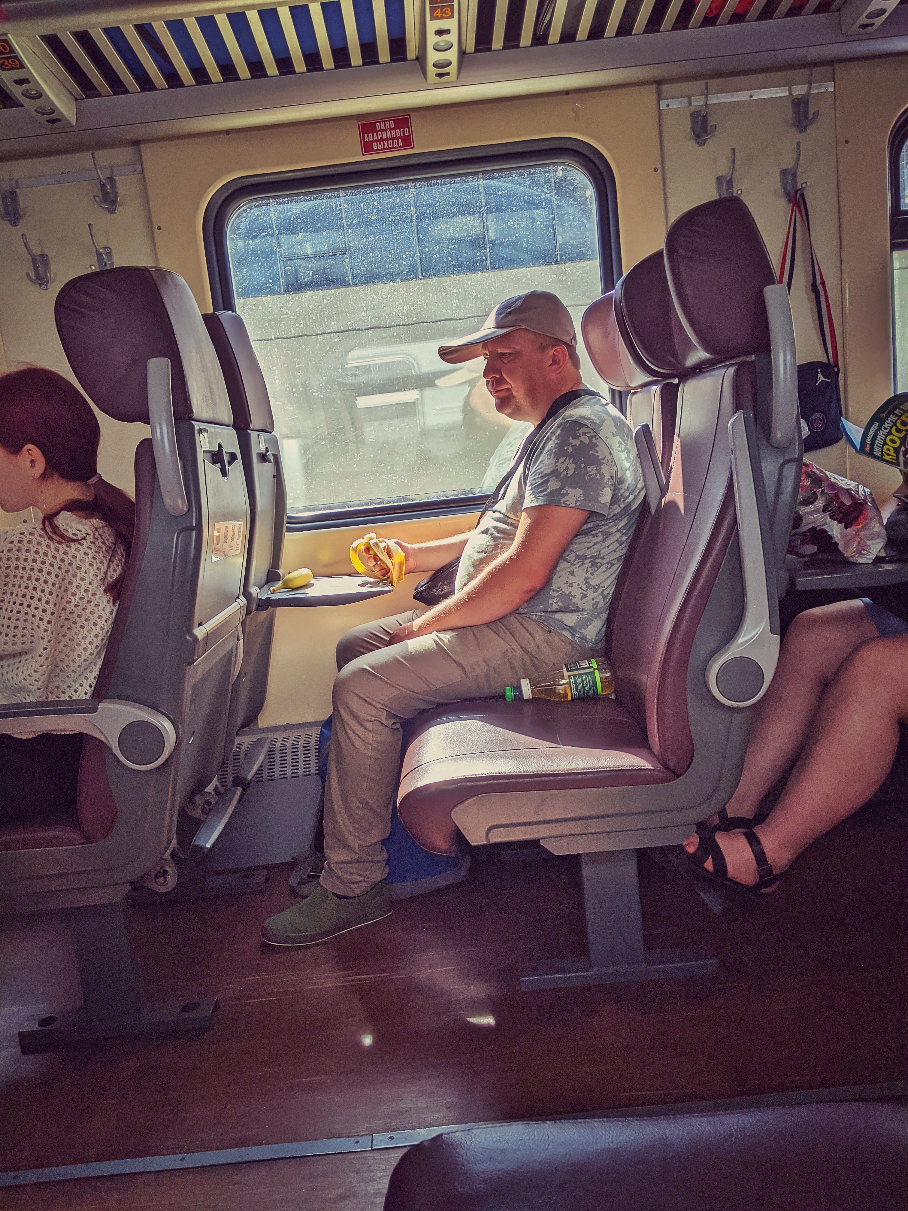 Техническое качество фоток не айс, но это телефон, цвет вполне себе, на первом ББ даже присутствует, на втором, что в поезде сложный свет из-за наличия двухцветного освещения, чтобы такое вытянуть нужна заполняющая вспышка с цветным фильтром и то не факт что получится.