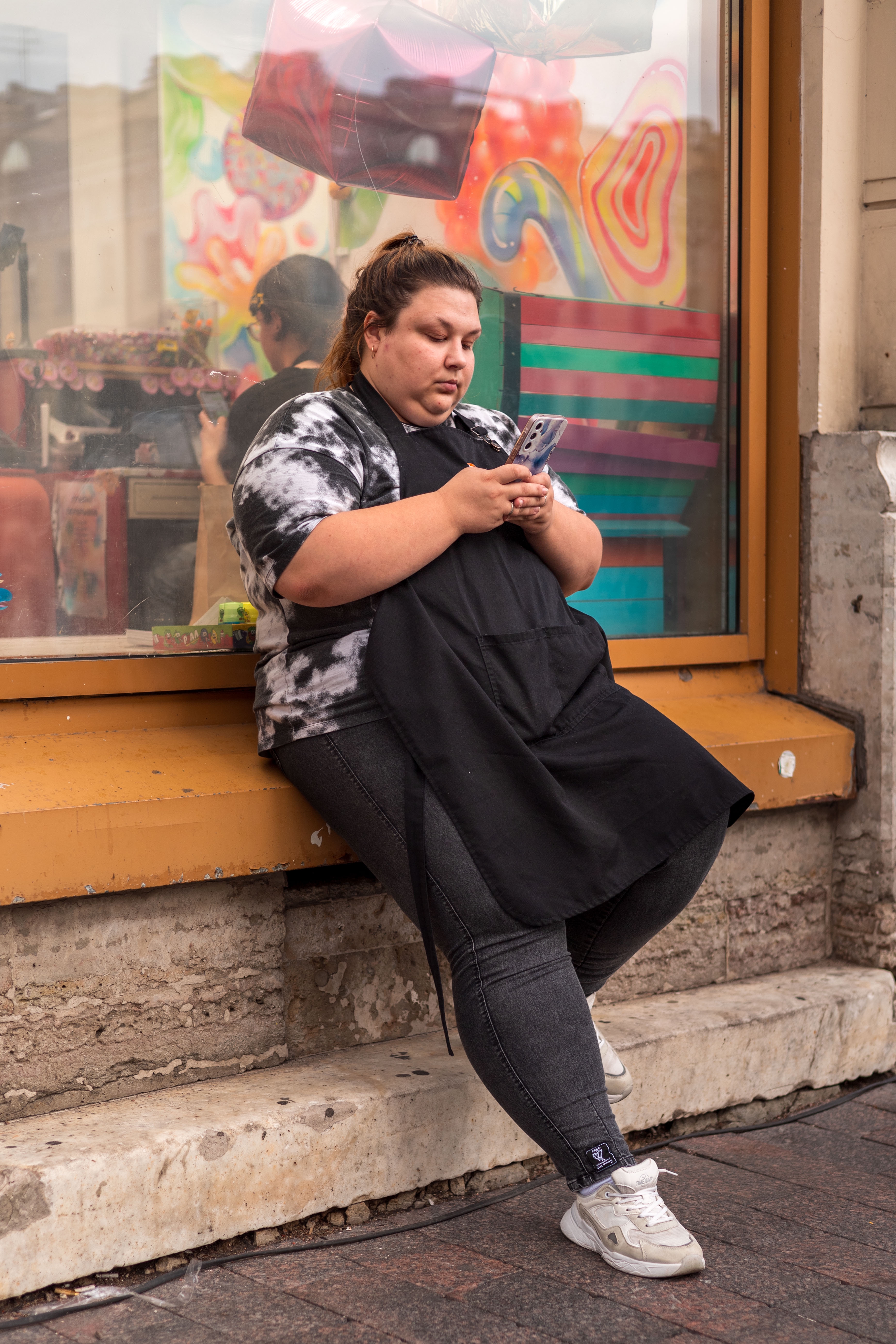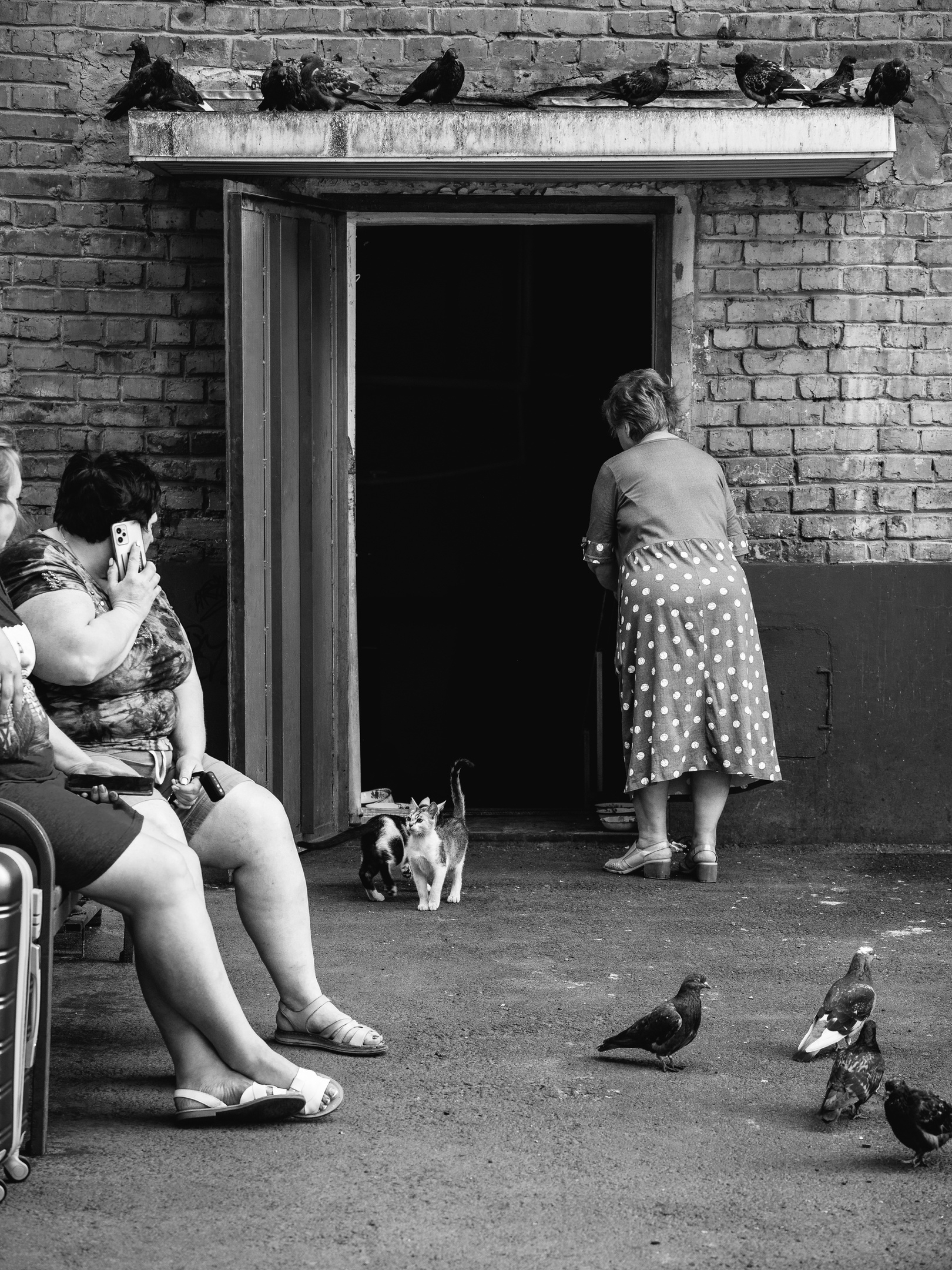 В основном прошло нормально, хотя в конце прям кринж момент был. Значит иду мимо черных выходов у кафе, там обычно персонал курит. И значит стоят 2 девушки в ярко желтых платьях. Думаю нужно щелкать. И видимо одна из них услышала звук - повернулась и начала пытаться позировать. А я как щелк сделал, хоть и видя это, наоборот потупил взгляд и начал прятать камеру. Кароч крип момент. Перехватываю ее взгляд, а она уже непонимающе смотрит.