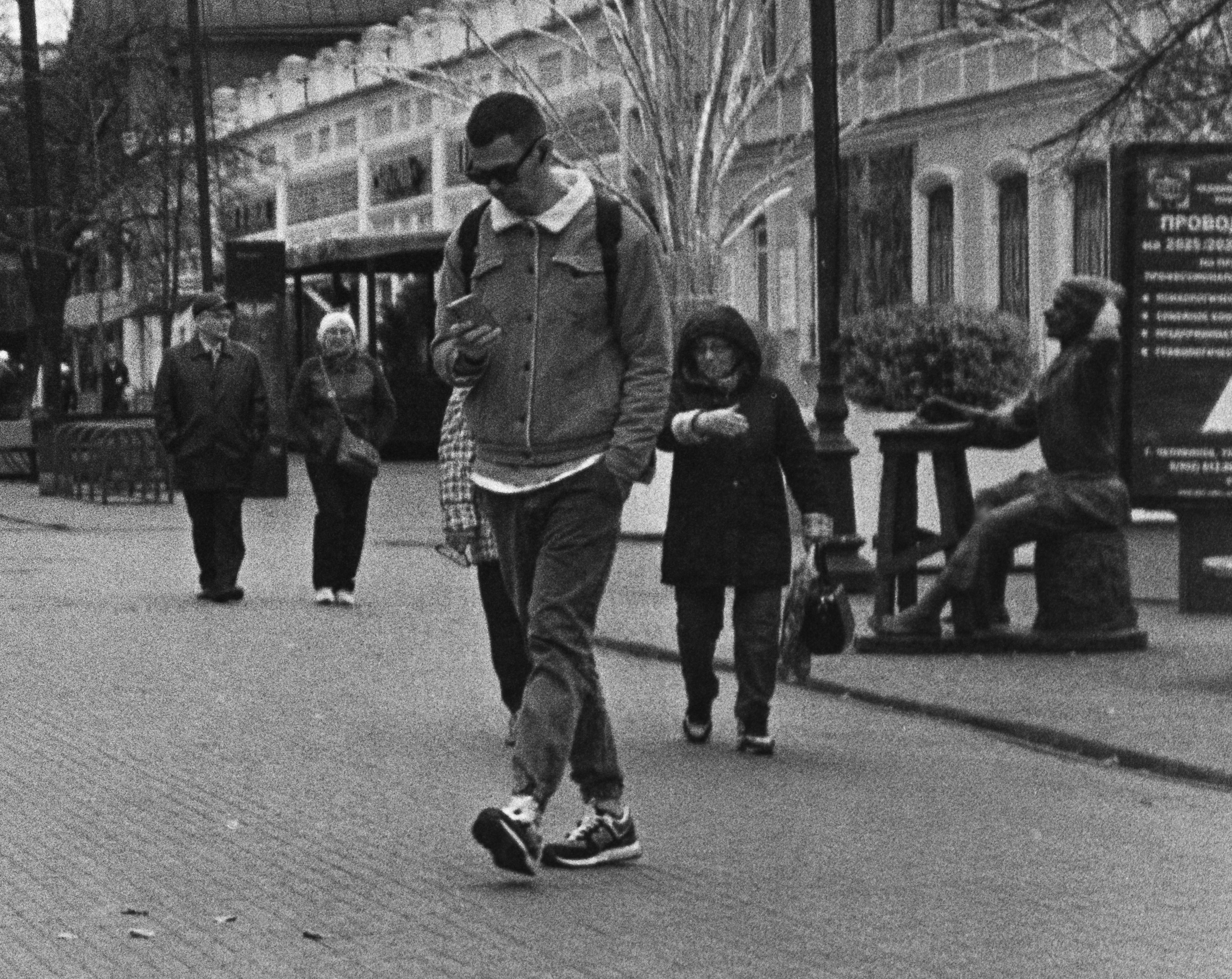 Кароч взял себе xt-5. Камера топ. Легкая, снимает быстро. Но как на крыльях вышел, так быстро и сдулся. Неуютно. Пробую носить ее у плеча, как стритеры, что бы развернуть в нужный момент. При такой носке запястье устает. Но сцыкотно разворачивать. Да и не вижу ничо интересного. 35мм, мануал фокус, пытаюсь подходить на 3м и снимать.