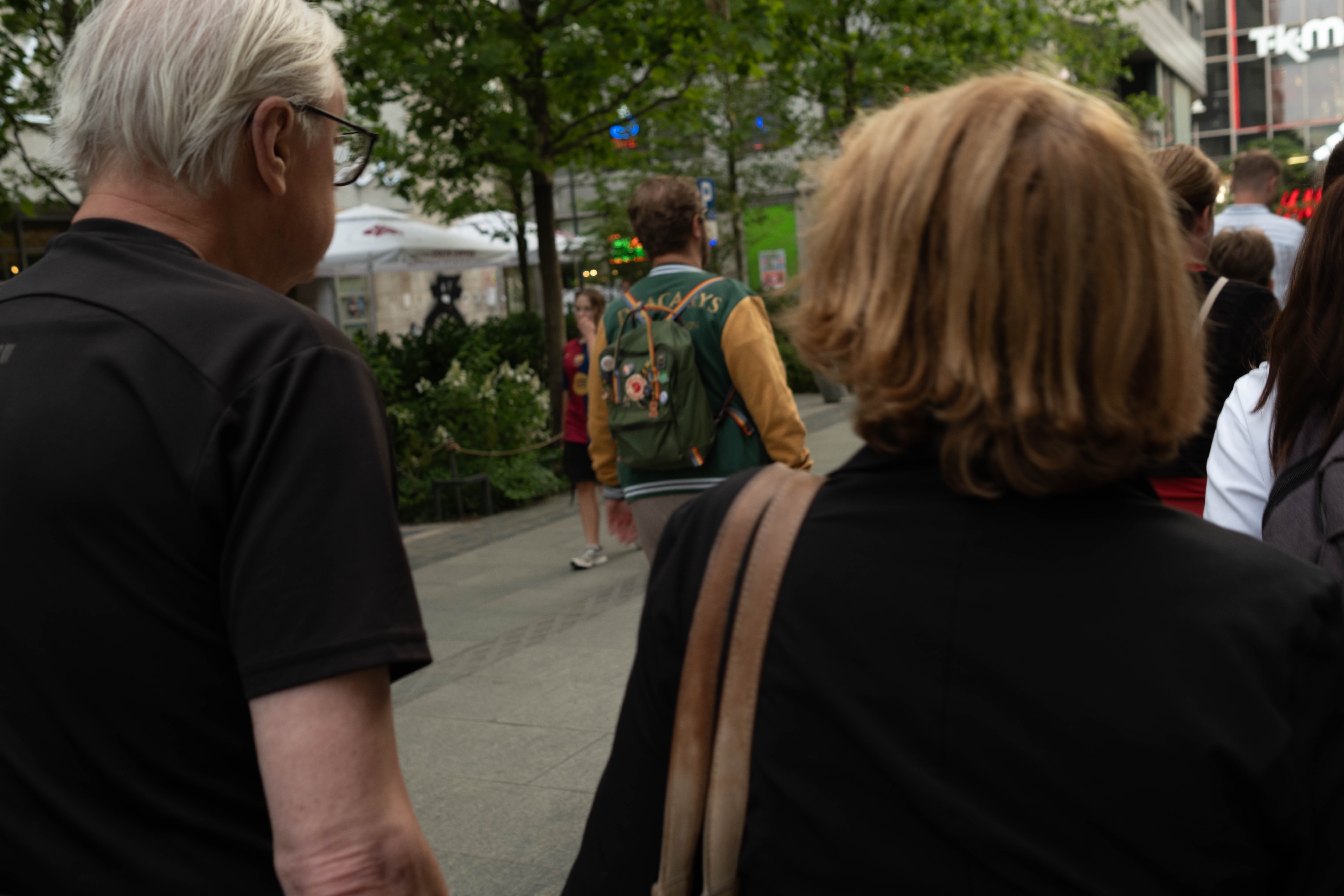 2. За 15-20 минут те кто там не находится надолго покидают это место и ты для всех новых выглядишь не тревожной чмонькой которая тряской из кармана пытается сфоткать спину, а уважаемой деталью местности которая тут всегда была, вроде бомжа с картонкой и памятника напротив.
