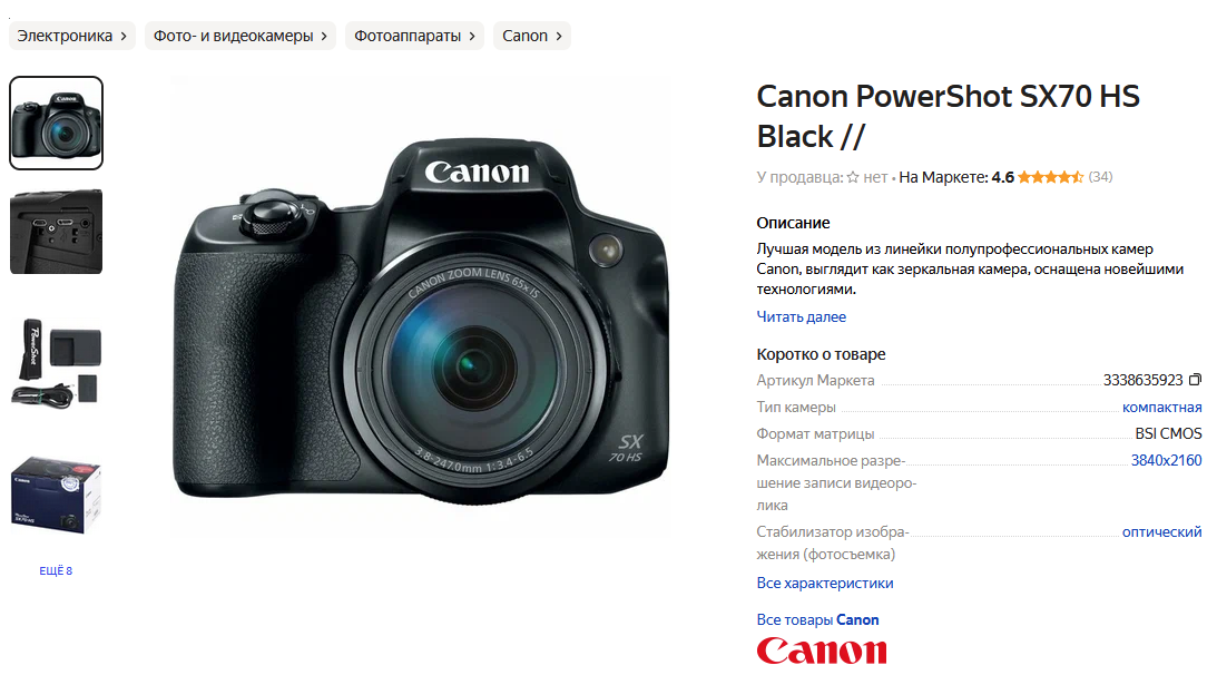 Просто сейчас есть в продаже явно его потомок с х65 зумом и какой-то дикой ценой, Canon PowerShot SX70 HS. У него так вообще 3.8-247 мм на 1:3,6-6,5 = 21-1365. Тут вообще получается 1365 на 1,6 853 мм.