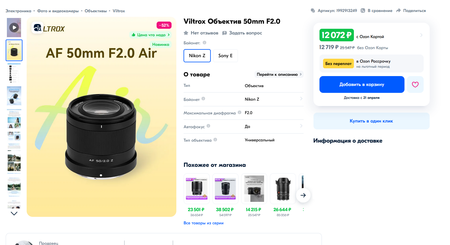 > Если ты не гонишся за резкодрочем, то можешь обмазаться винтажными полтинниками через автофокусный переходник о техартра. Я например видосики часто снимаю на юпитер-9 с м39 резьбой, да на открытой на фото он мыльноват, а вот для видео в 4 к вполне норм, а если прикрыть до 2 то видосик будет попиксельно резкий. Ну или если не хочешь на некроту много тратить, купи юпитер-8, он как минимум легкий, мелкий, как запасной полтинник даж с переходником, он вообще удобный. Да на открытой у него край мыльный, но размеры и вес имеют значение, как запасной полтинник его можно всегда с собой в сумке держать.