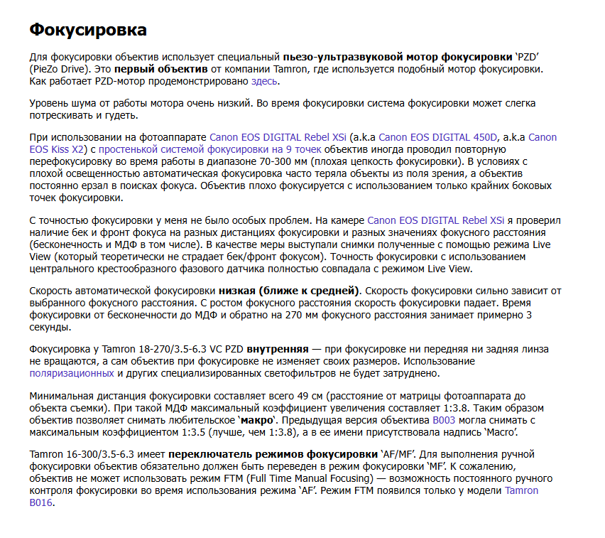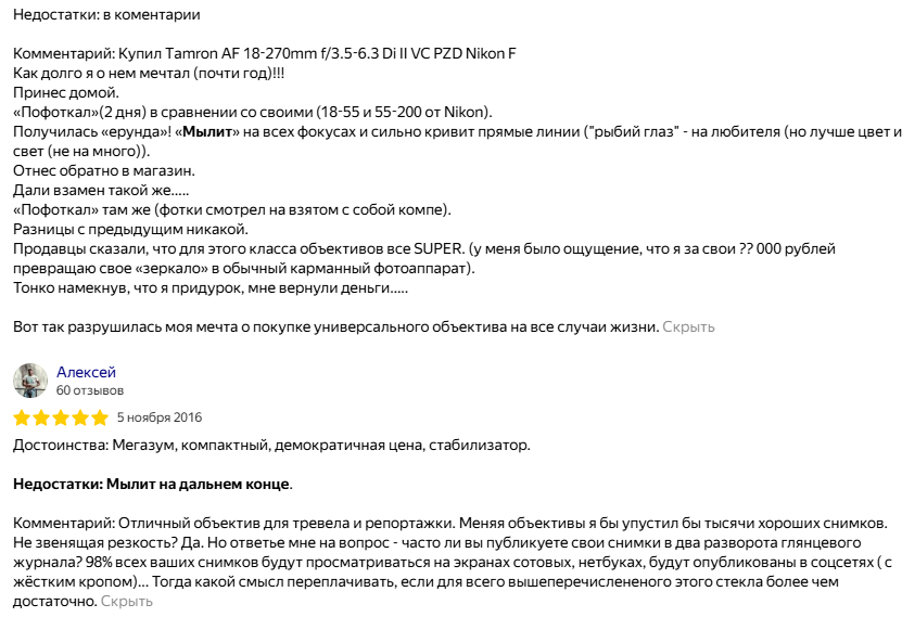 >>880191 Проблема в том, что чем больше разброс фокусных, у объектива, тем он сложнее, тяжелее и дороже, если мы хотим качественную картинку. Так как тамрон 18-270 имеет ебанический разброс фокусных, и при этом он ни хуя не топовое стекло за 3-5 к баксов, то закономерно картинка говно.