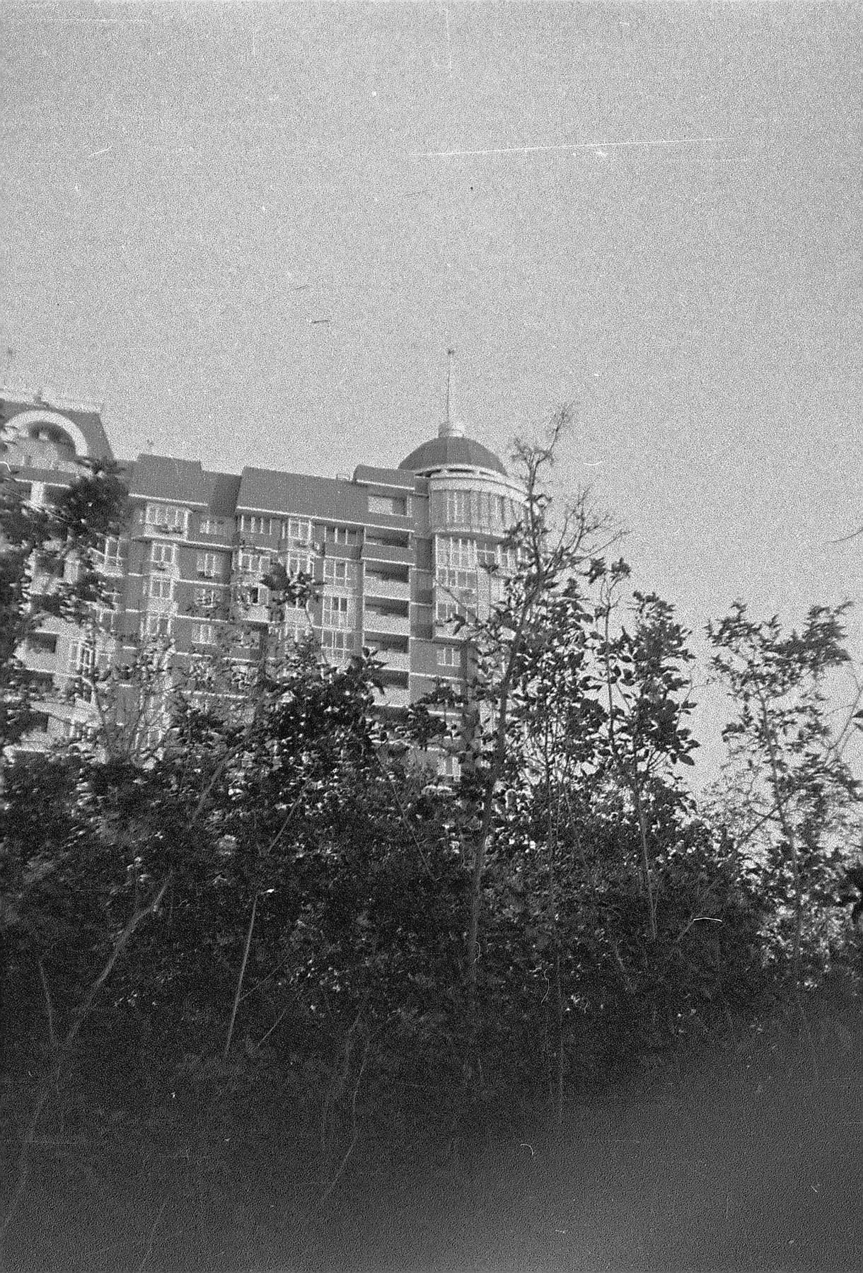 После починки самого первого зоркого сразу же задыхаясь от жадности вставил в него китайский Etude 400 и попиздовал снимать. Накрутил Индустар 22, ничего от него не ожидая, потому что собран он был из двух разных объективов, и до конца я думал что там проёбана вся юстировка, но как же я охуел когда отсканил, ощущения атас. Даже то что зоркий решил дать жидкого и зажевать последние 10 кадров, даже то что я обосрался с проявкой не смогли испортить моё хорошее настроение.