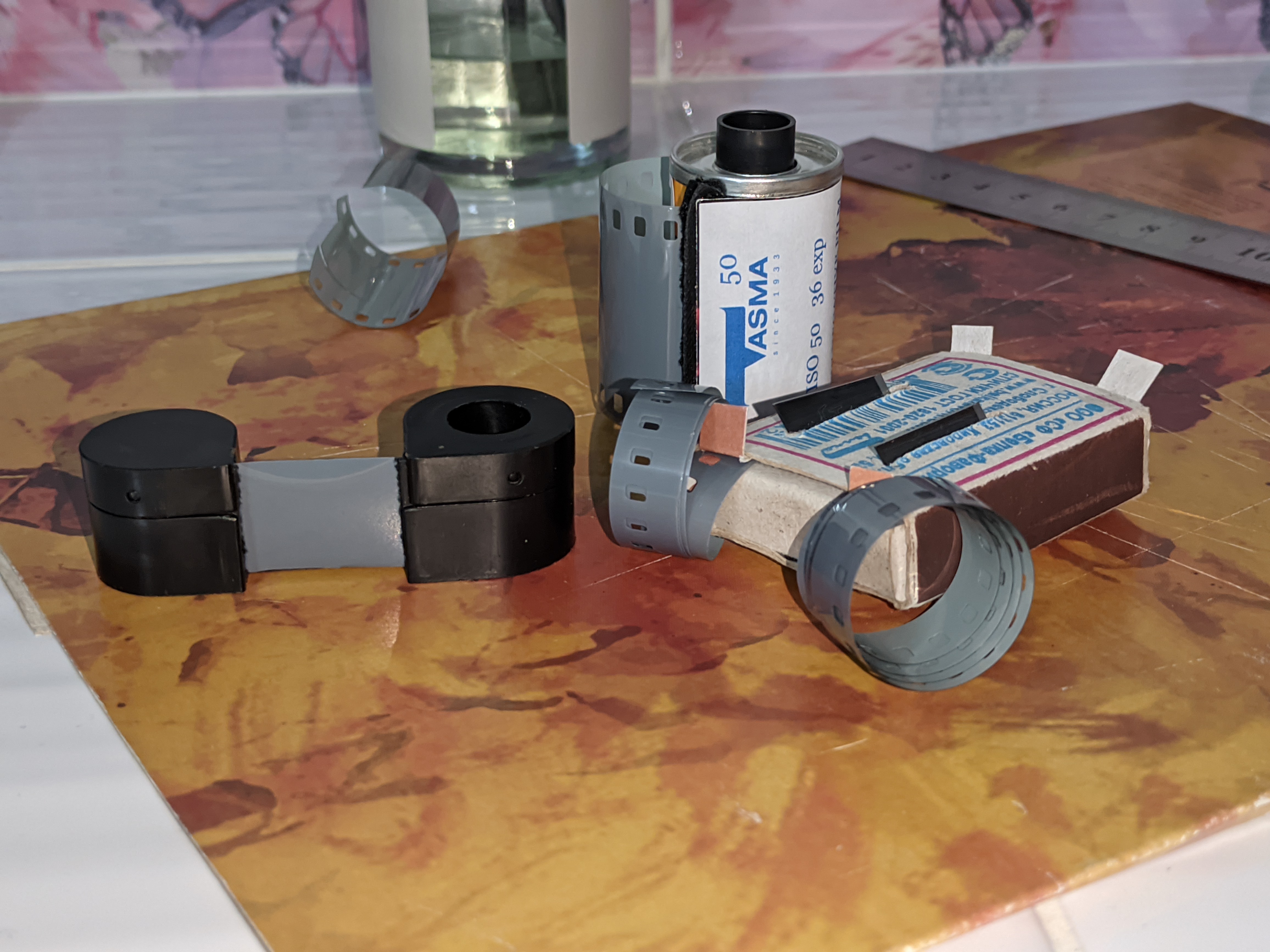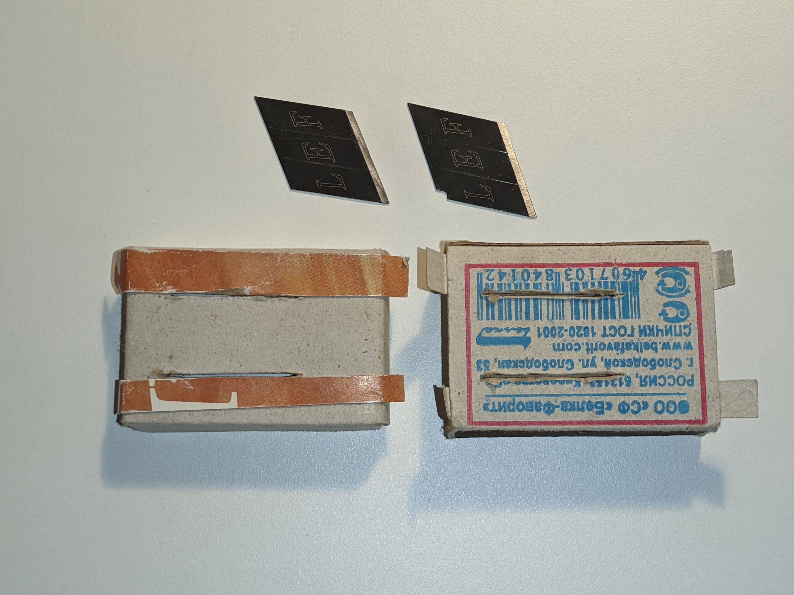 Ключевые моменты, которые не очевидные 1. Очень важно чтобы резак резал не шире 16мм, всё что шире не будет нормально мотаться в кассете. Лучше чуть меньше 16мм сделать, будет норм. 2. Сначала я думал что плёнку просто пихаешь сразу к лезвиям и она будет нормально резаться. Но нихуя. Сначала плёнку надо продеть в коробок без лезвий, чтобы конец торчал с другой стороны. Потом через щели ты в неё вставляешь лезвия, после чего уже протягиваешь за конец (последний пик это плёнка готовая к протягу) 3. В начале плёнка криво режется, надо просто продолжать без резких движений её тянуть, резка сама выровняется, а начальный кривой кусок 5-10см потом нащупать и отрезать.