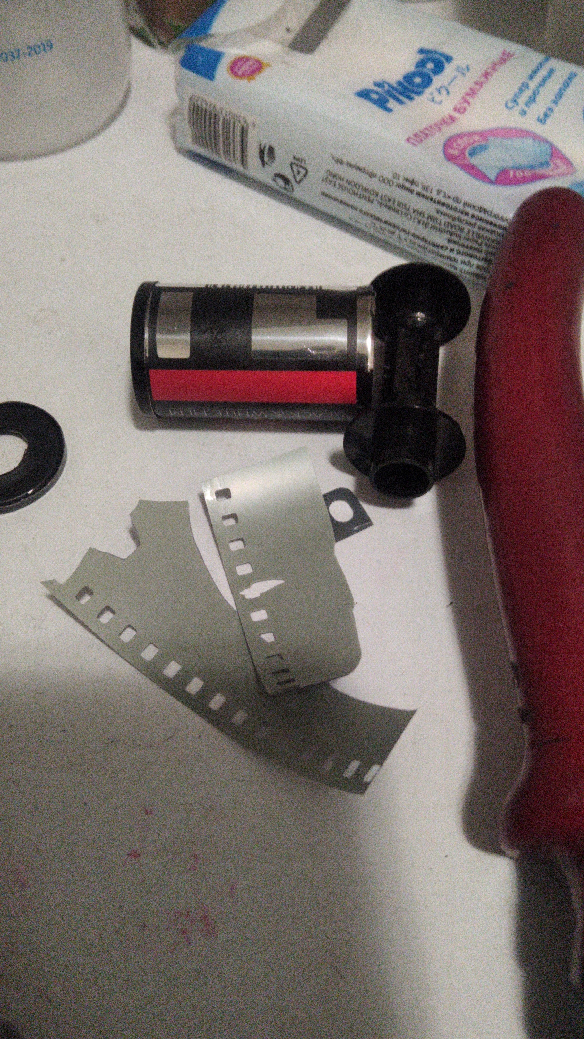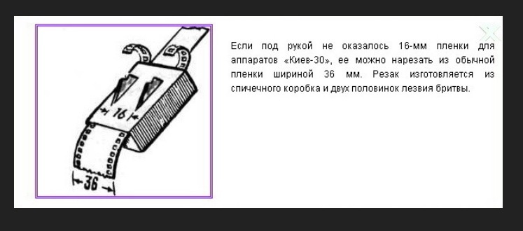 3. Убедись что у тебя вообще есть кассета для пленки, для этой камеры. Тебе придется эту пленку не только резать самому, на 2 пленки, но и потом запихивать её в кассету, причем нужной стороной, эмульсией к объективу чтоб была. И для проявки тебе понадобится добыть фотобачок советский, а к нему или сколхозить, или найти штатный переходник под 16 мм пленку.