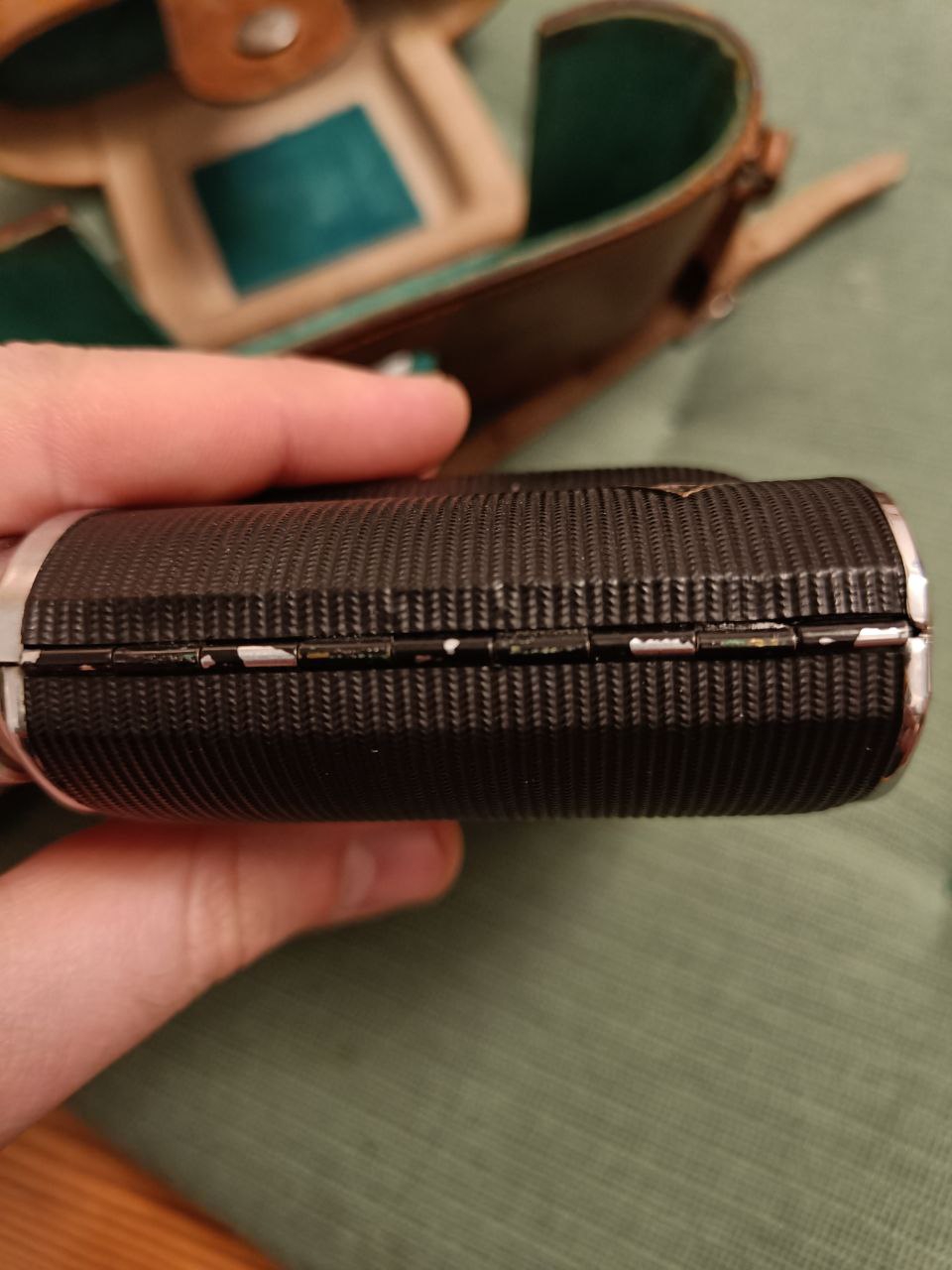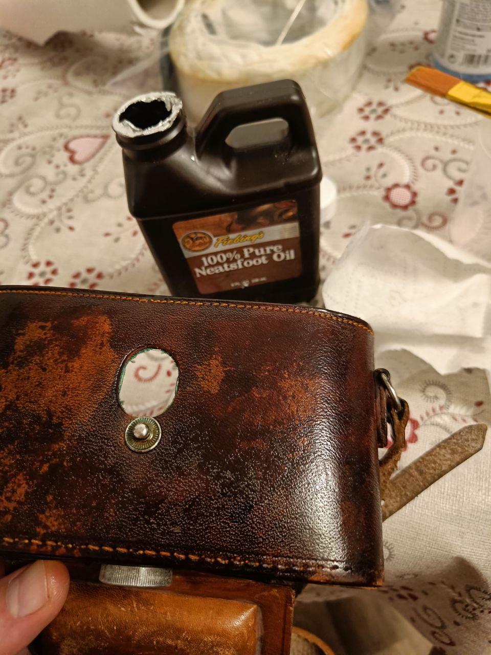 Сегодня сел я таки поковырять этот пепелац. Сначала прочистил дальномер из-за которого мне продали камеру как нерабочую. Но там просто смазка засохла в коросты. Но немного очистителя для тормозных дисков и все ходит без нареканий. Собрал камеру обратно и какое же это удовольствие - 4 винта и всё собрано. Покрутил и проверил всё в сборе, каеф, и решил обиходить чехол. Корова, прошедшее на его пошив старше моего бати, так что при обмазывании костным маслом, оно вписывалось ещё до того, как я кисточку успевал передвинуть. Посмотрю, что из него завтра будет. Хотел меха тоже обмазать, но чот призадумался, а кожа ли это? Кожзам тогда уже умели делать, а ему от масла нихера хорошего не светит.
