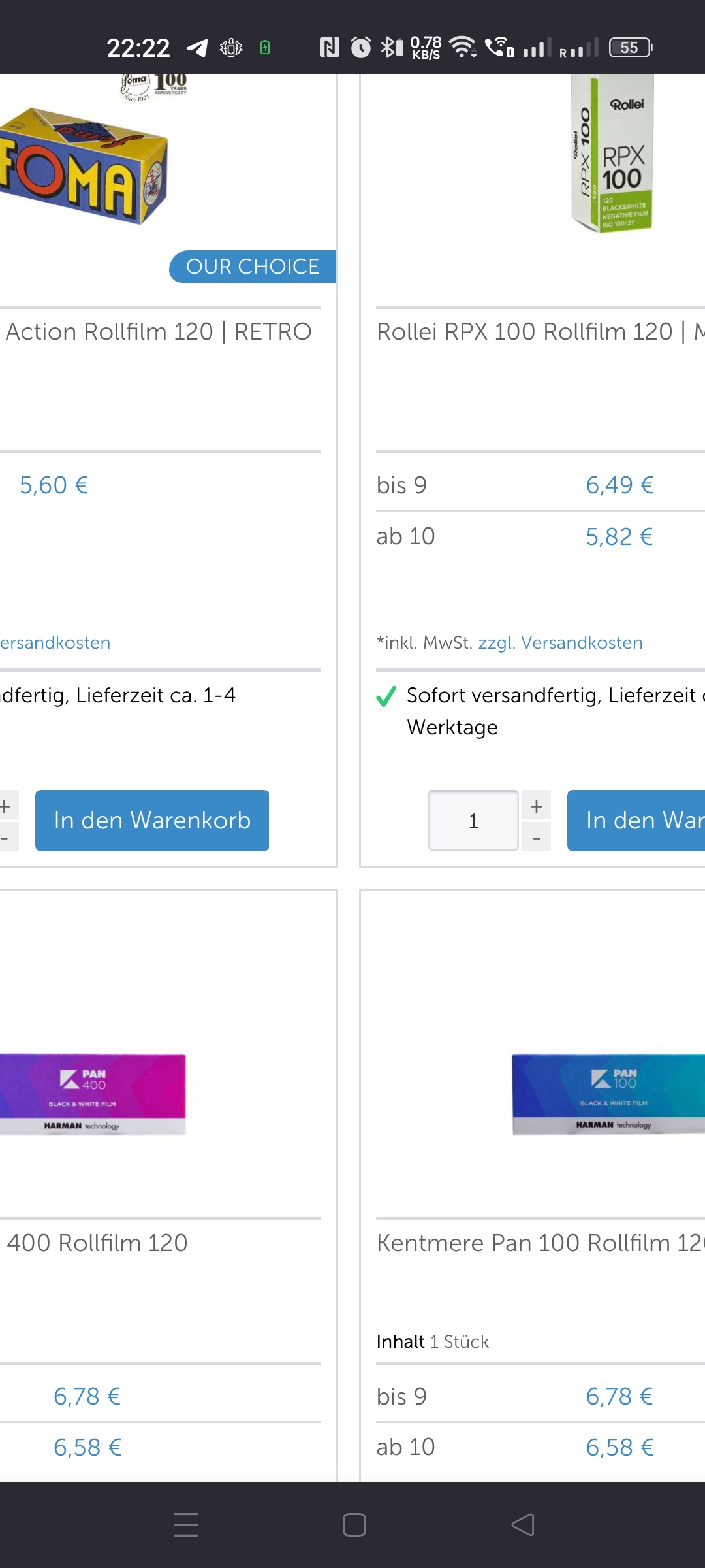 >>874334 ну, агфовская АвиПот 80 есть, 200 тоже все еще в ходу, больше 400 проблемненько найти, 32 iso в большинстве случаев не нужно, так как снимать не удобно будет, если не яркое солнце