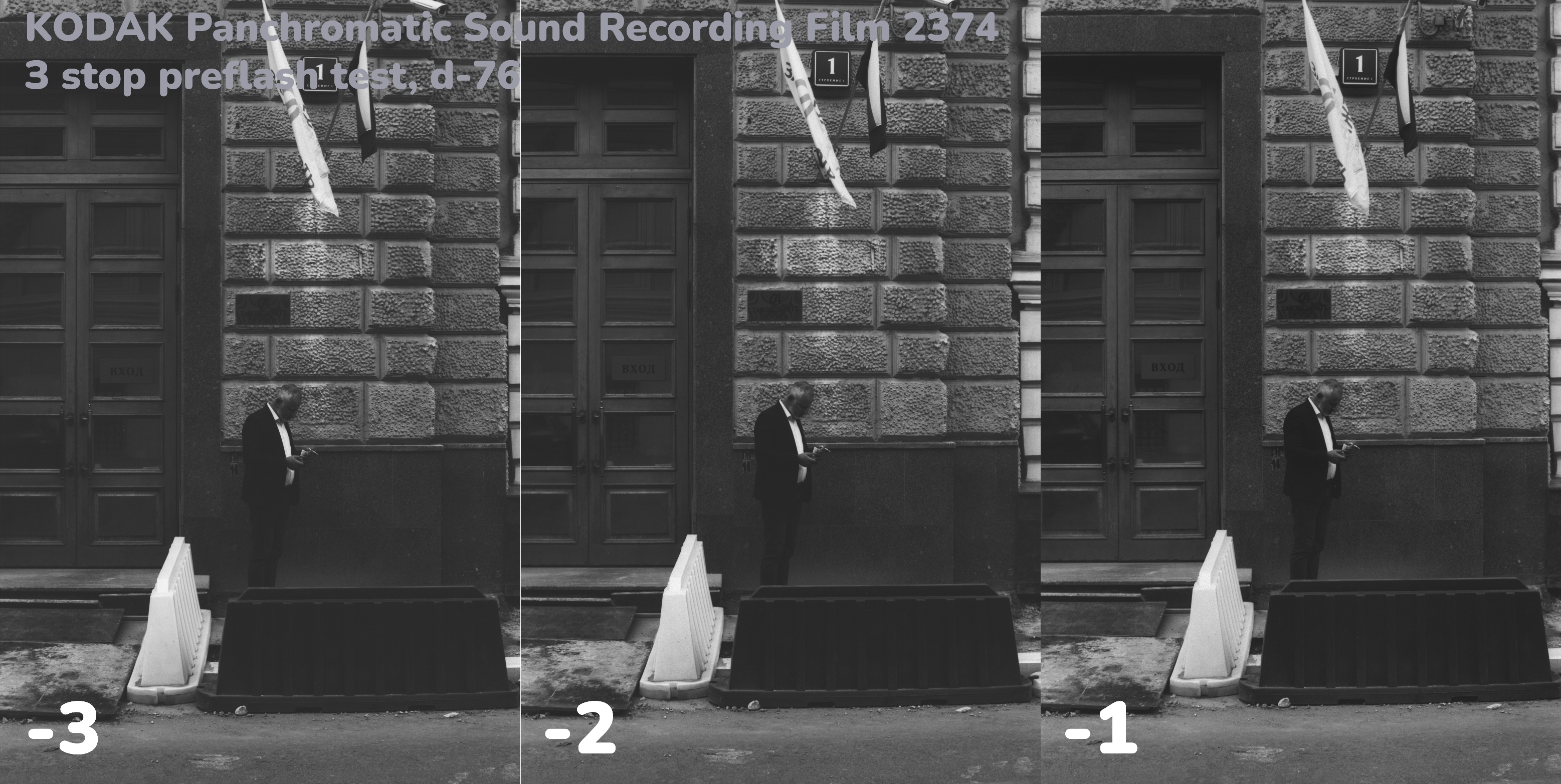 Смотал пленку, досал фильмпикером и сделал одни и те же кадры с одной и той же экспозацией, по 3 штуки.