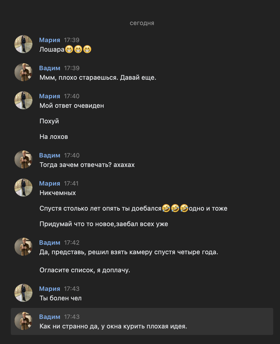 >>890269 >Только самому ручками и ножками к знакомым. Удачи в мухосрани. Помню был знаком с очень красивой сексопильной тян, и был у неё хороший фотик, и я хотел у неё этот фотик взять погонять, а она не дала. И я короче обиделся на неё и перестал общаться. Типо секс дать - это на, можалуйста, а дать фотик погонять - типо недостататочно знакмы, меня это пиздец тригернуло. Я же норм пацан был с благими намерениями, а на меня такое недоверие вылили.