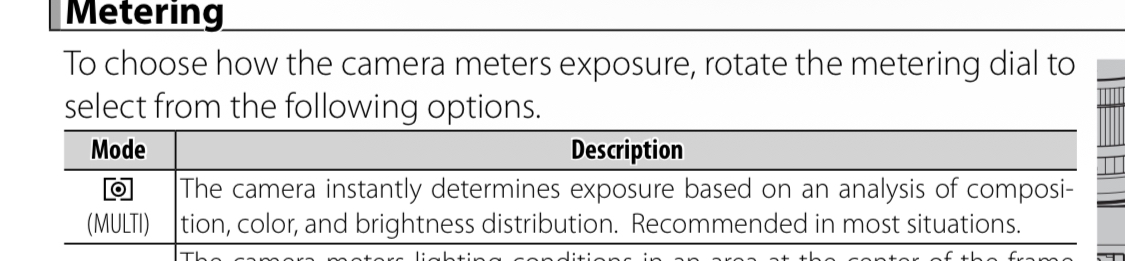 Кто-нибудь тут понимает по какому принципу этот замер посередке работает? Судя по пиктограмме это центро-взвешенный, но он не работает так, он работает как-то по своему непонятному алгоритму, я пробовал поместить светлый объект на темный фон и он выбирал переэкспонировать объект. То есть вроде как принимает сцену во внимание?