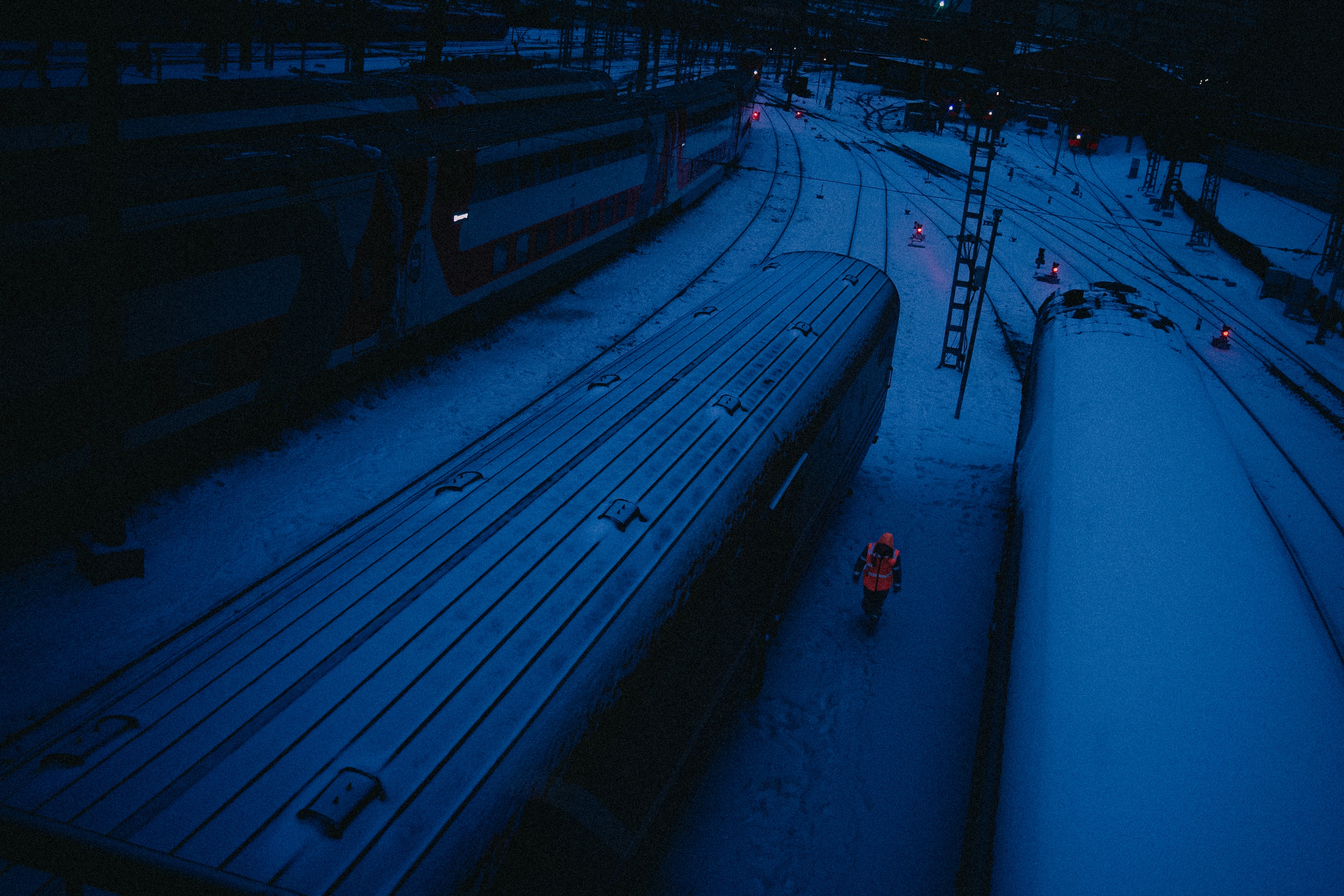 На второй мы просто смотрим на 2 поручня. Кусок переднего плана справа уже не так работает на глубину. Какая то шапка торчит и рукав непонятный. Ну и контраст пониже. Не норм.
