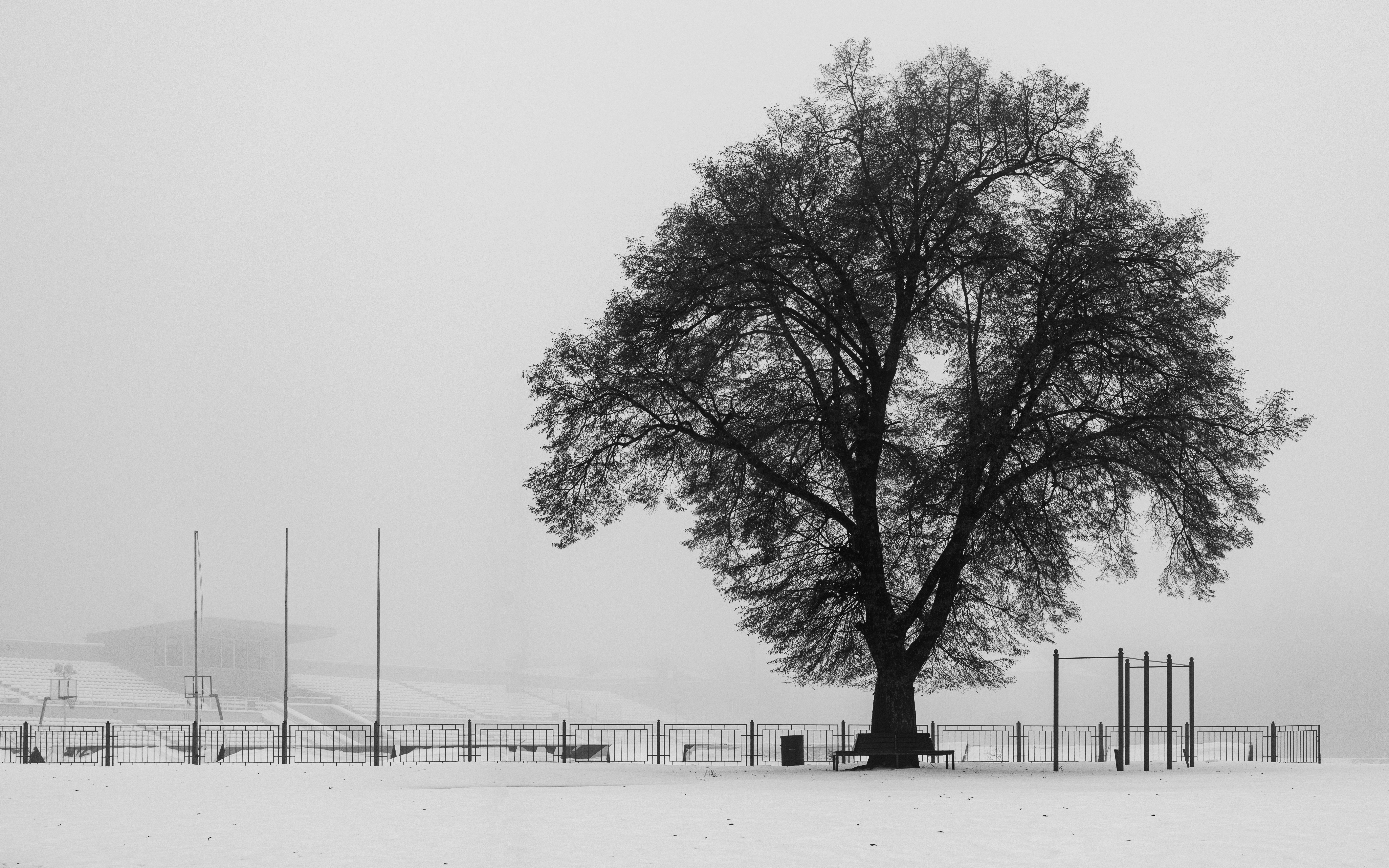 Пользуйся гистограммой. Черный (ствол дерева) и хайлайты (на снегу спереди) не должны схлопываться. Это плохо выглядит. Даже если ты и решил их в какой-то тон увести - градации должны сохранятся, не надо до клипинга большие площади доводить.