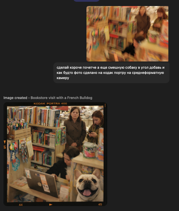 >>894530 Ну по факту удаление с помощью ИИ ластиком - это уже близко. Но подходы к использованию инструмента разные. В одном случае ты чётко сам говоришь - что тебе надо. С ними ведь как - дашь размазанное условие - типо твоего - типо дорисуют рога и копаты. На мой взгляд, ювелирная работа заключается в том, чтобы улучшить то, что есть - а не перерисовать всё заново. А ластиком убираешь - она сама придумает, что там тебе нужно - далеко не всегда попадает в цель. Но времена, когда надо было выйти в какое-то особое время суток, чтобы сфотать площадь без людей или сетовать, что дескать провода попали на фоне трубы от котельной - и никак не подберешься чтобы их не было - действительно позади. Ты сам решаешь, что включать в композицию, а что нет. Я не вижу в этом ничего постыдного.