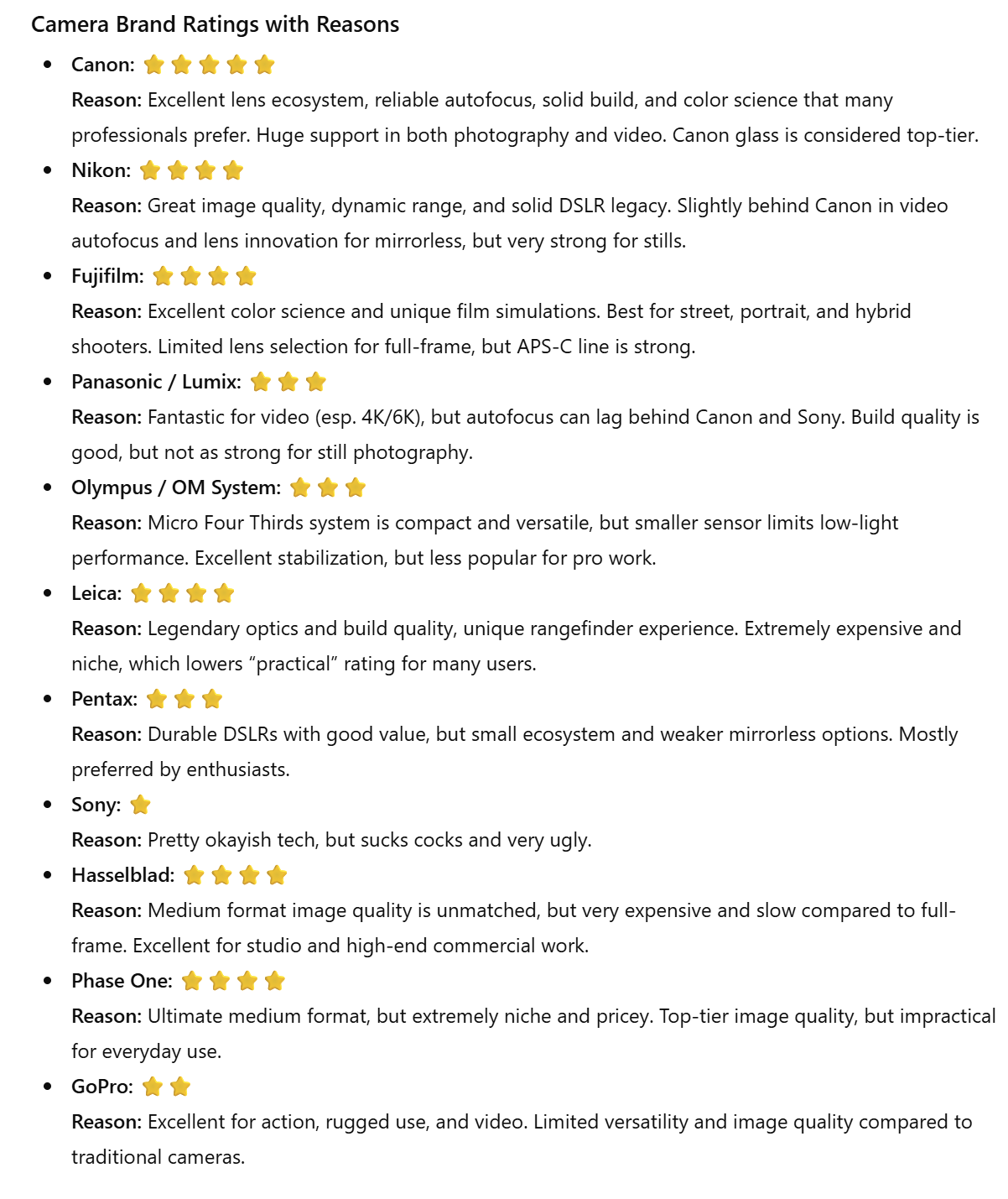 Эти мантры берут корни из того факта, что на R камерах хорошо работают старые зеркальные объективы с мотором, в отличии от никон где была куча объективов с отвёрткой. Типа вот смотрите на сапог можно поставить любой EF объектив, а на содомит не любой объектив F.