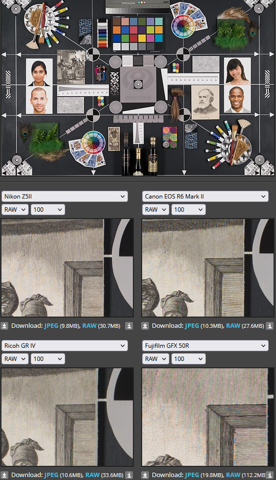 Это вообще adobe camera raw дефолтные настройки. К камерам там вообще вопросов нет (джипеги там тоже не внутрикамерные представлены). Из описания: The visualisations of Raw data (and the accompanying downloadable JPEGs) are based on a standard development process using Adobe Camera Raw.