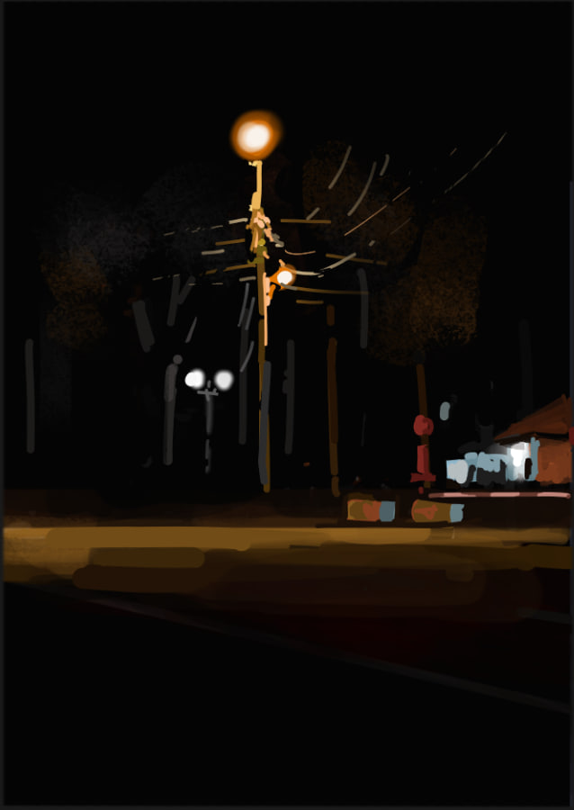 >>930478 >>930765 Как-то все разрозненно, нет связи между деталями. В верхней непонятно куда вообще смотреть, где центр композиции. Лучше возьми реф более профессионально сделанный. И, наверно, надо в черноту добавить что-то связующее: звезды там, силуэты далеких домов на фоне еще более далеких облаков, от больших городов всегда есть зарево. Дальний план создал бы потрясающую глубину. Вот хотя бы еще один маленький фонарь в перспективе с этими на второй было бы супер. А вообще атмосфера есть, тоже захотелось ночь порисовать :3