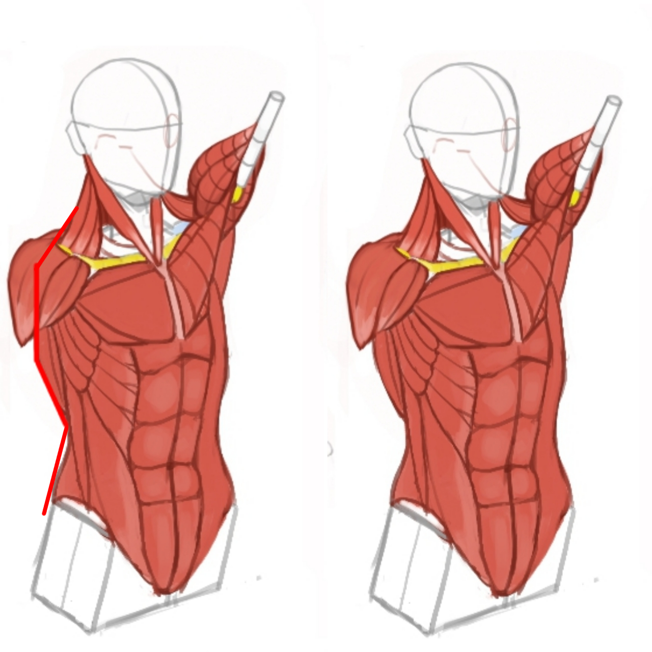 Помогите нубу-идиоту разрешить загадку. Сап, Двач! Относительно недавно решил научится рисовать. Смотрел туториалы с Ютуба, и вроде всё неплохо шло, пока не пробовал нарисовать тело в 3/4. Загвоздка в чём: позвоночник S-образный, грудная клетка стоит под наклоном а лопатки - прямо. Поэтому, по идее, в профиль линия тела должна идти как ломанная с 3-мя углами. Первый угол с перехода дельтавидной мышцы к лопатке, второй - переход с лопатки на широчайшую мышцу спины, третий - переход с широчайшей мышцы на косую мышцу живота ( если не чего не напутал). В общем как на пике 1. А если тело так в профиль смотрится, то и в 3/4 должна быть такая же структура. И тут непонятно. Вроде бы и похер, как идёт линия, рука всё равно прямую часть перекроет, но тогда, по логике, при поднятии руки этот прямой участок ломанной должен виднеться. А на разных референсах эта линия идёт по разному: на рисунках это проглядывается более чётко ( пик 2, там всё как я и думал), на фотках вообще не пойми как, то как я предполагал, а то не так, прямой участок пропадает и теперь это ломаная с 2-я углами (пик 3). Так ещё и на некоторых фотках в профиль структура спины отличается от предполагаемой мной, и образовывается всё та же 2-угольная ломанная(пик 4). Я уже не понимаю, как эта линия идёт правильно, может там мышцы как-то не так цепляются, как я думал, может из-за сдвига лопаток и сокращения мышц при подъёме руки этот прямой "бугор" пропадает, может из-за положения Юпитера в небе или ещё чего. Постарался описать свою проблему максимально чётко, надеюсь на помощь и объяснения где конкретно я проебался.