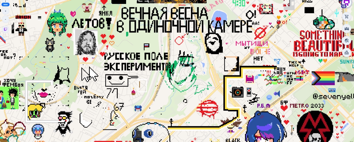 Интересный сайт, удивлен, что в моих пердях кто-то рисует. Дельтаруна как-то многовато. В Уганде рисуют Форсена, Нью-Дели заполонили говном, под Покровском линию фронта кто-то рисует. Вообщем, круто всё это, надеюсь стабилизируют серваки свои.