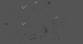>>212386Пожалуйста сделай фон посветлее и кисть пожирнее, глаза сломал. Помалафил белым где узрел успех. Посренькал черным там где ты отошёл от гестуры в пользу силуэтов (не один я так делаю, лол). А остальные я не смог рассмотреть, извини.