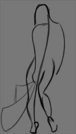 Да, и ещё, ребят, в ответ на вопрос «что вообще требуется от гестуры?». Глобально — то же самое, что и от цвета, композиции, прочих выразительных средств. То есть соответствие начальному замыслу. Или личному восприятию.Возьмём ту же фоточку, но поменяем замысел: нам нужно не пластично-напружиненное стояние, выражаемое дугами, а кадр, снятый во время танца. И тогда мы используем более резкие, ритмичные линии. Потом их можно выделить светом, контрастами, платьем и т.п. а другие линии, более плавные дуговые этими же приёмами списать.