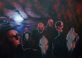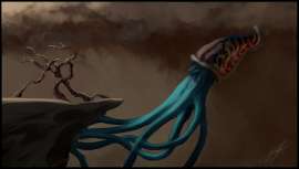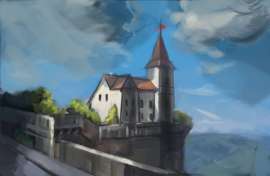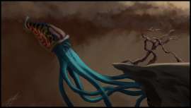 Прокомментируйте цвет, плановость и композ, пожалуйста. И нет, слова "говно" - недостаточно. Мне как-то нужно сильнее выделить голову дракона (и перепилить оную, а то лебедев во сне явится и удушит) и более внятно разбить на планы. С какой стороны подойти - не особо ясно, потому что придется или уводить персонажей в еще более темные тона с яркими бликами/светом от солнца и растаскивать остаток диапазона тонов по двум другим планам, или делать персонажей в средних/ярких тонах и что-то еще добавить в качестве первого плана. Ну и потаскаю еще по холсту все это дело - компоновка мне сильно не нравится.