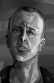 >>264110очень гладко всё. Ощути характер, выбери кисть и манеру мазка под этот характер и хуярь грубее.А то ты ему сгладил вообще всё