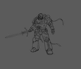 Все равно, приходится напрягать взгляд. Я бы еще добавил местами контраста с фоном в нижней части восновном и освещение на голове как-то выглядит немного неестественно, как-будто на броню ннаправлен слабый белый луч, а на гриве нет отблеска от горячего неба. А вообще работа очень годная.