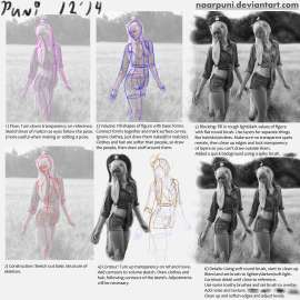 Вы заебали. Если нет учебника и разжеванного гайда, значит надо учиться подражанием и наблюдением. Использовать для этого всё что попадается под руку.А ещё не помешает выучить английский/японский язык научиться гуглить. На девианте и на пиксиве полно туториалов, стадиков и просто куча листов когда видно как размышляет художник.Если вы не способны учиться по таким материалам, значит вам надо искать учителя и платить ему деньги.