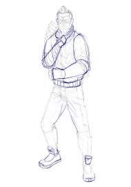 >>465703Если ты хотел изобразить ходьбу вперед, то не удалось, не читается совсем. Посмотри на фотки мужиков-моделей на подиуме, что у них с ногами происходит во время ходьбы. Ты присогнул и развел оба колена, это неверно.Рука с букетиком маленькая и без следов анатомии под рукавом - нужно простроить хотя бы внешние контуры мышц и положить на них одежду со складками. То же самое и с другой рукой за спиной - просто так, нарисовав дугу тебе не отделаться от неё.Разберись, где у тебя таз и талия - и только после этого одевай на него штаны и сажай пиджак.Ступни слишком широкие и с невнятной формой, как блины - даже с учетом того, что они в готичных говнодавах. Тебе надо посмотреть рефы, как выглядит такая обувь во фронтальном виде.Да и рефы букетика тоже. А ещё ты забыл ухо.Если все это обобщить - не хватает понимания объема и анатомии, формы везде смятые, видно, что плохо представляешь себе все то, что должно происходить у него под одеждой и как части его тела крепятся между собой, а также мало пользуешься рефами. Даже рисуя из головы - запасайся ими для каждой детальки, и не тупо перерисовывай, а анализируй форму, чтобы ты мог представить себе предмет не только в том ракурсе, что видишь на фотке, но и в других - и изобразить это на бумаге. Но это, опять же, надо научиться для начала справляться и с более простыми формами. Робертсон и ещё раз Робертсон, не пренебрегай всем этим.