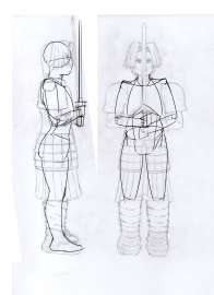 >>613008Ну вот. Я уже вижу (даже не смотря на то что на пике явно другой доспех):1) Ни хрена не понятно, что у тебя за материалы, это кольчуга, сталь, ламилярный доспех? Юбка из чего? Из ткани, дерева, кожи?2) Меч двуручный? Полуторный? Тогда почему длина как у одноручного?3) Где сочленения брони, пояса, ремешки, неужели вся это махина просто весит у него на плечах?>>613012Перспектива у тебя плоская, что делает рисунок простым и детским, повернул бы его на 45 градусов и уже можно было бы о чем то говорить. Размер рук-ног головы проебан, если ты ориентируешься на реализм, а какой там стиль у тебя в голове был не может знать даже Аллах на небесах.