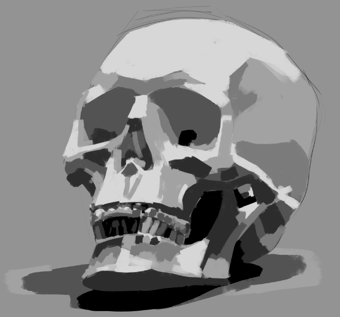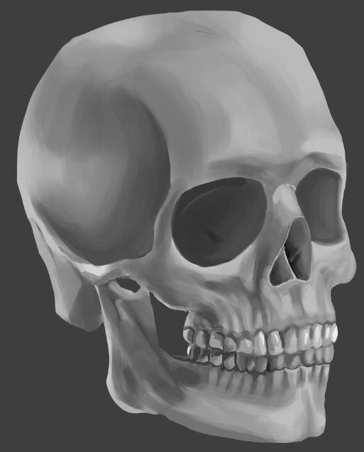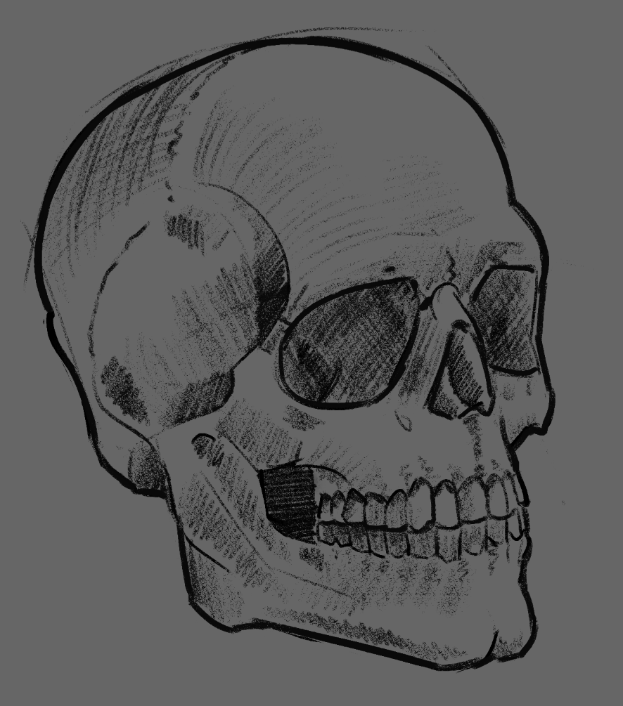 Ты без рефа рисовал? А то я очень сомневаюсь, что в жизни бывают такие кривые черепа.